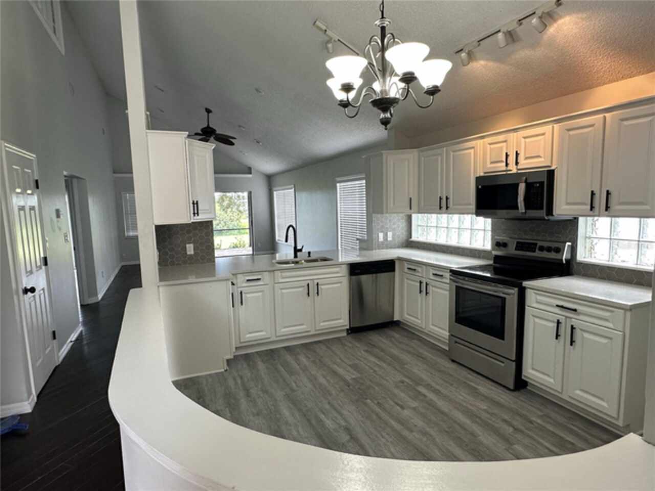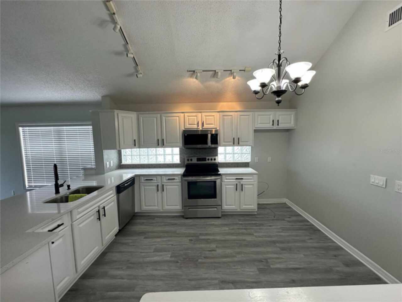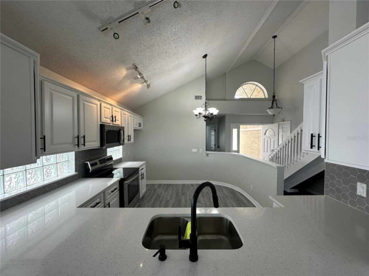 REDUCED! Beautifully renovated 3-bedroom, 3-bathroom single family home located in the highly sought-after Errol Estate community. This move-in ready property features soaring vaulted ceilings, a brand-new architectural shingle roof, and fresh interior and exterior paint. The upgraded kitchen boasts granite countertops and a full stainless steel appliance package. The spacious master suite is conveniently located on the first floor and includes a garden tub, separate shower, and dual sinks. Upstairs, you will find the third bedroom with its own full bath provides the perfect private retreat for guests. Enjoy outdoor living in the large screened patio overlooking the peaceful greenway. A rare opportunity to own a modernized home in a desirable neighborhood!