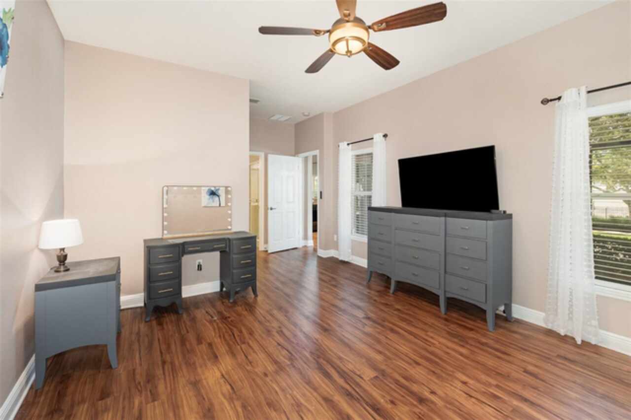 Ceiling Fans(s), Eat-in Kitchen, Primary Bedroom Main Floor, Solid Surface Counters, Solid Wood Cabinets, Thermostat, Walk-In Closet(s)