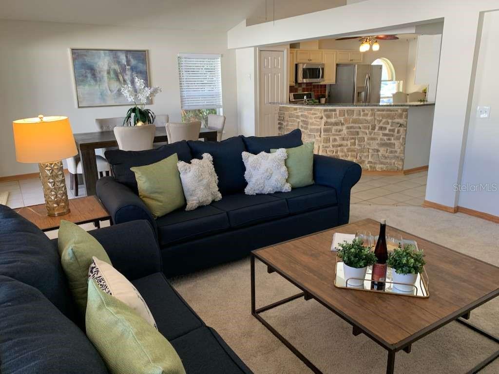 Welcome home to this beautifully updated and inviting 3-Bedroom 2-bath Home which is beautifully appointed and looks like a model. The home features fresh interior paint, new carpet/pad, and new blinds throughout — giving every room a bright, clean, and welcoming feel. Step inside to an open-concept living area with soaring vaulted ceilings and two new skylights that fill the home with natural light. The spacious kitchen offers granite countertops, high-end stainless steel appliances, and plenty of prep space — perfect for family dinners or weekend gatherings. The open layout connects the kitchen, dining, and living areas so everyone can be together while still having their own nook. The primary suite is a peaceful retreat, complete with a walk-in closet, soaking tub, and separate shower. Two additional bedrooms provide plenty of space; each has generous closets and plenty of natural light. The hall bathroom had a brand new toilet installed. Step outside to the screened-in back porch, perfect for morning coffee or evening relaxation. With no rear neighbors, the fenced backyard offers privacy and safety. The finished shed adds valuable bonus space — ideal for a playroom, she shed or man cave! The garage includes built-in shelving for organized storage. This home offers a welcoming community vibe with great local conveniences: Top-rated schools just minutes away, close to Publix, Target, Starbucks, and Apopka City Center, making errands easy and quick. Nearby recreation includes Wekiwa Springs State Park for kayaking, swimming, and family picnics. Northwest Recreation Complex, featuring playgrounds, baseball and soccer fields, walking trails, and seasonal community events. Easy access to SR-429 and US-441, putting Orlando attractions, Lake Mary, and Mount Dora all within a short drive. Move-In Ready and Waiting for You - From the fresh updates inside to the convenient location, this home combines comfort, convenience, and community. Don’t miss the chance to make it yours — schedule your private tour today!