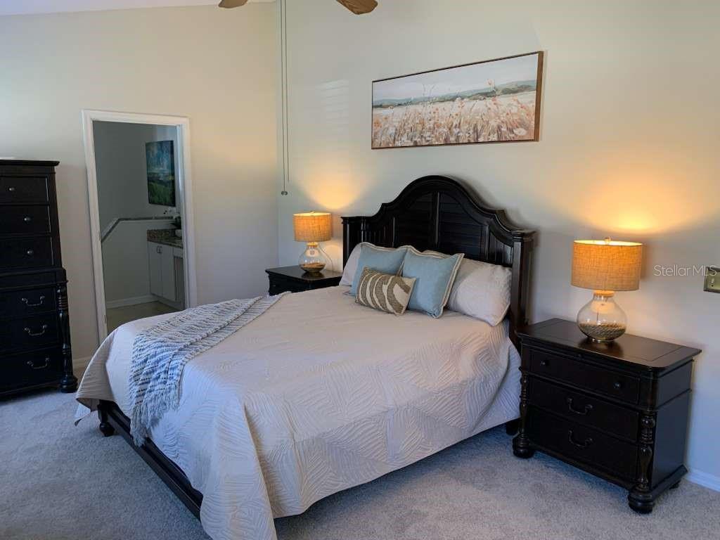 Cathedral Ceiling(s), Ceiling Fans(s), Eat-in Kitchen, High Ceilings, Living Room/Dining Room Combo, Open Floorplan, Primary Bedroom Main Floor, Solid Surface Counters, Solid Wood Cabinets, Thermostat, Vaulted Ceiling(s)
