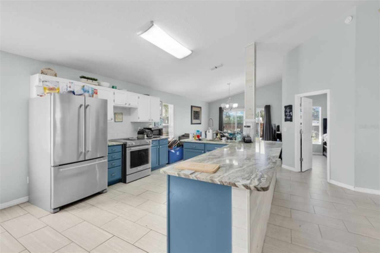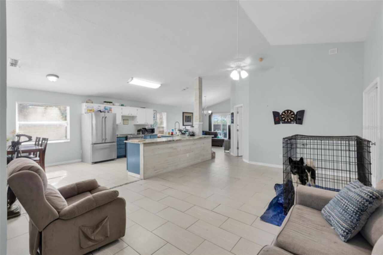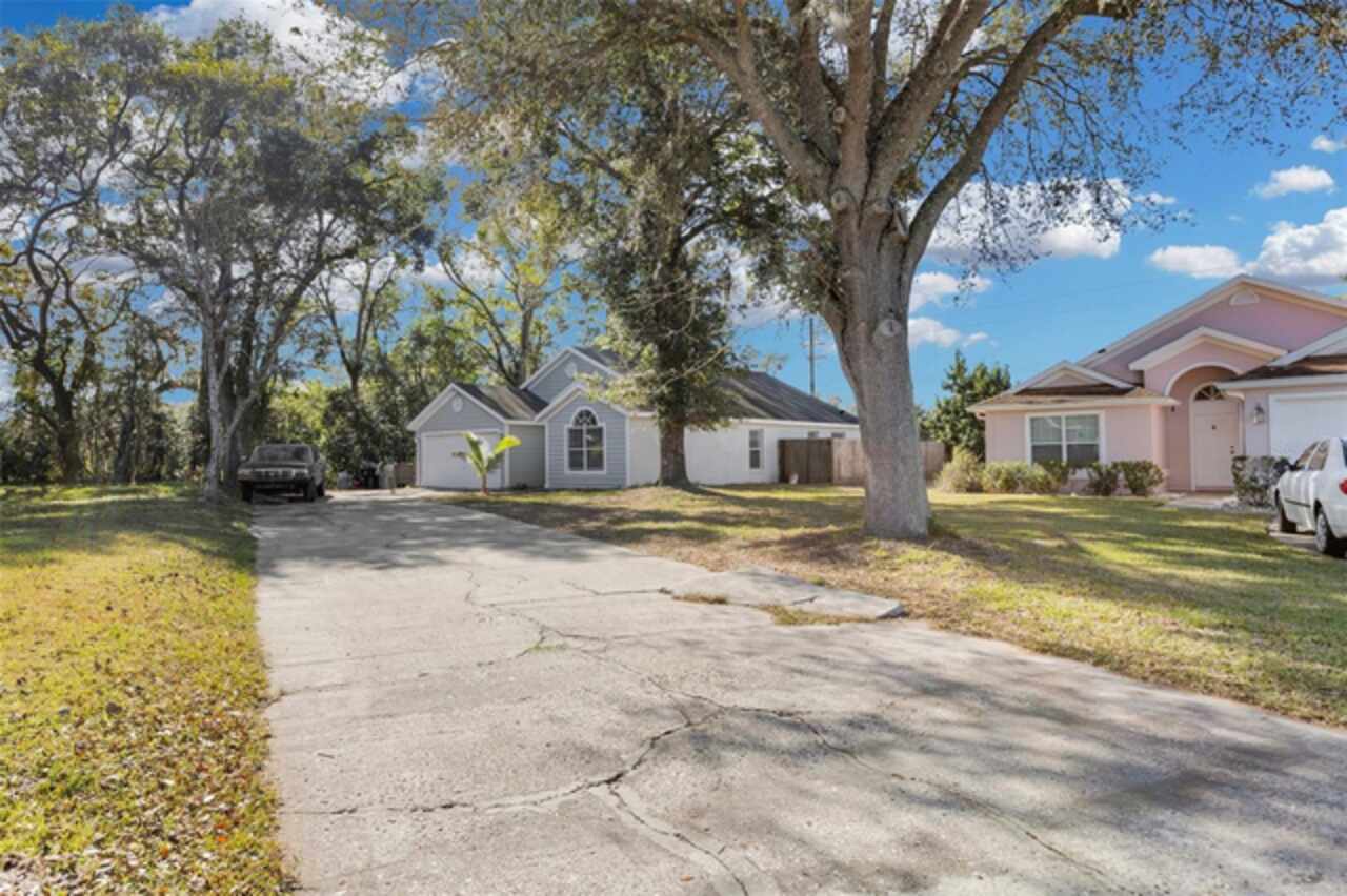 Motivated Sellers! This home is now vacant! Also Eligible for a Subject-2 Deal. Discover the perfect blend of rustic charm and contemporary urban flair in this unique four-bedroom, two-bathroom home in Apopka. Situated on a spacious corner lot, this property greets you with an extra-long driveway and expansive front and backyards shaded by mature oak trees. The thoughtful design carries inside, where the theme of space and sophistication shines. Step into a bright, open floor plan that seamlessly combines elegance and comfort. High ceilings and sleek plank tile flooring create an airy, welcoming atmosphere. The modern kitchen is a centerpiece of style and functionality, featuring designer countertops, premium KitchenAid appliances, and a professional-grade faucet. Adjacent to the living area, a versatile guest bedroom with double French doors offers possibilities as a home office or a cozy reading nook. The dining area overlooks the fully fenced backyard, an outdoor haven complete with a trellis and planter for added privacy and charm. Perfect for relaxation or entertaining, this backyard retreat is a standout feature of the home. The owner’s suite is a true sanctuary, boasting soaring ceilings and a luxurious ensuite bathroom with a chic double vanity and an impressive double-sided shower. The second bathroom is equally refined, showcasing updated finishes and a polished design. This home is as practical as it is beautiful, with key updates that include a new roof (2016), AC (2019), generator hookup transfer switch (2020), and water heater (2021). Nestled in a tranquil, tree-lined neighborhood, you’ll enjoy the peace and privacy of this community while being just minutes from major routes like 441 and 414, providing easy access to shopping, schools, and Orlando’s top attractions. Schedule your tour today and experience all the charm and upgrades this exceptional home has to offer!