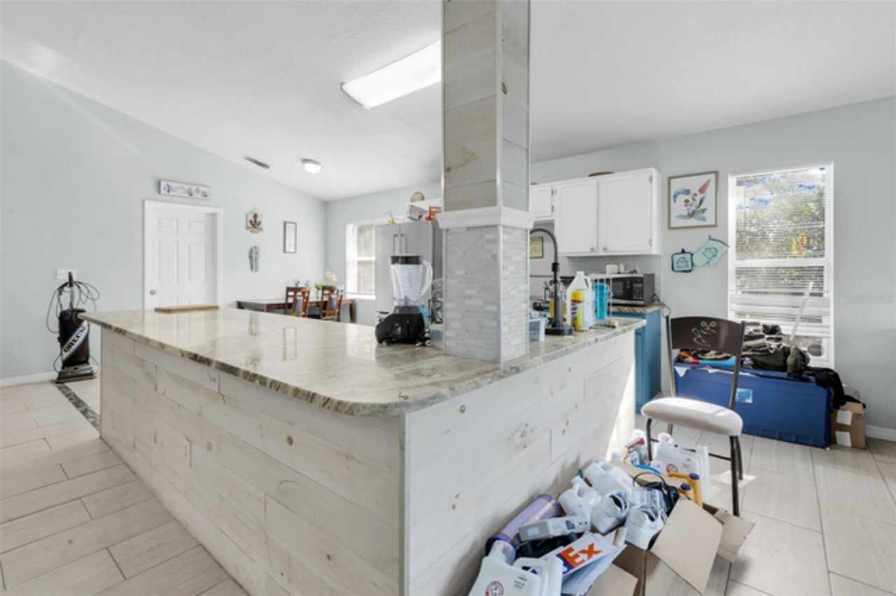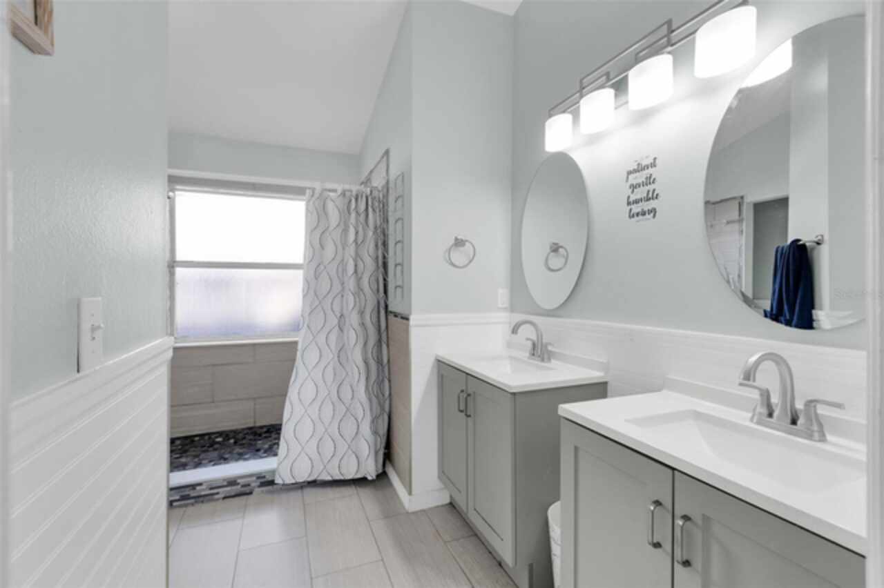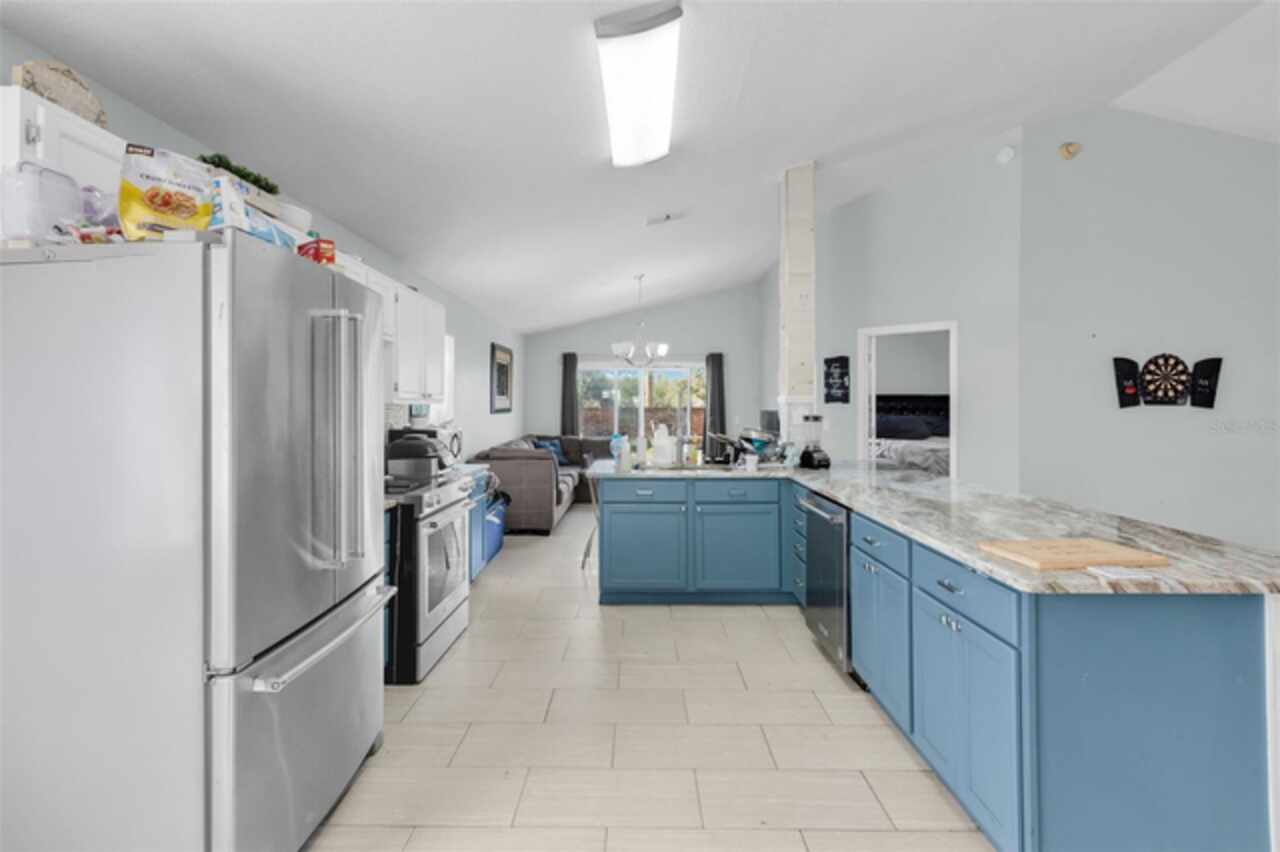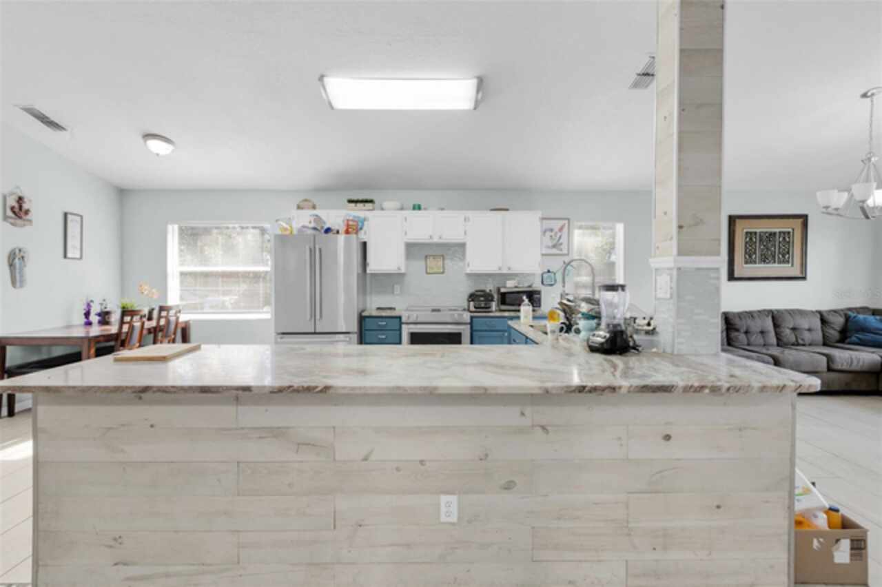 Motivated Sellers! This home is now vacant! Also Eligible for a Subject-2 Deal. Discover the perfect blend of rustic charm and contemporary urban flair in this unique four-bedroom, two-bathroom home in Apopka. Situated on a spacious corner lot, this property greets you with an extra-long driveway and expansive front and backyards shaded by mature oak trees. The thoughtful design carries inside, where the theme of space and sophistication shines. Step into a bright, open floor plan that seamlessly combines elegance and comfort. High ceilings and sleek plank tile flooring create an airy, welcoming atmosphere. The modern kitchen is a centerpiece of style and functionality, featuring designer countertops, premium KitchenAid appliances, and a professional-grade faucet. Adjacent to the living area, a versatile guest bedroom with double French doors offers possibilities as a home office or a cozy reading nook. The dining area overlooks the fully fenced backyard, an outdoor haven complete with a trellis and planter for added privacy and charm. Perfect for relaxation or entertaining, this backyard retreat is a standout feature of the home. The owner’s suite is a true sanctuary, boasting soaring ceilings and a luxurious ensuite bathroom with a chic double vanity and an impressive double-sided shower. The second bathroom is equally refined, showcasing updated finishes and a polished design. This home is as practical as it is beautiful, with key updates that include a new roof (2016), AC (2019), generator hookup transfer switch (2020), and water heater (2021). Nestled in a tranquil, tree-lined neighborhood, you’ll enjoy the peace and privacy of this community while being just minutes from major routes like 441 and 414, providing easy access to shopping, schools, and Orlando’s top attractions. Schedule your tour today and experience all the charm and upgrades this exceptional home has to offer!