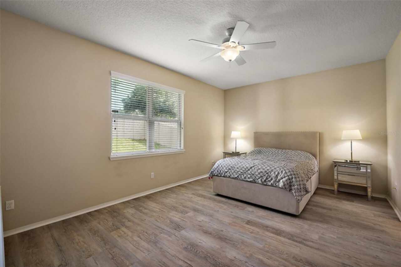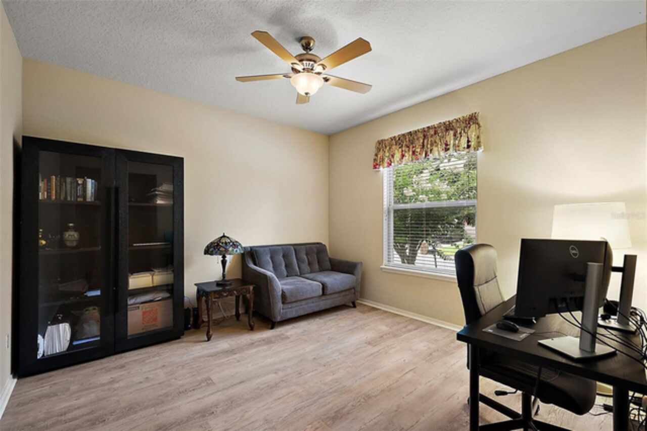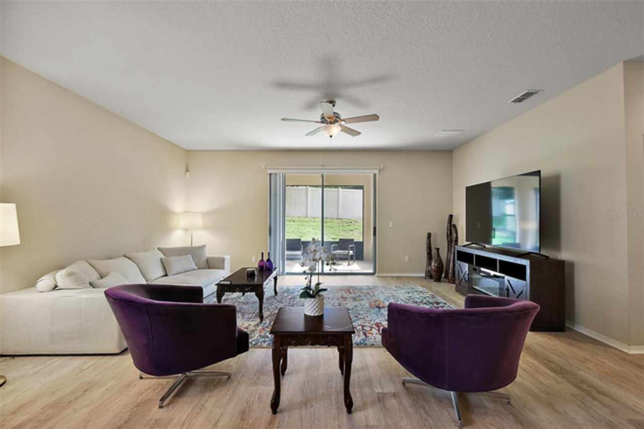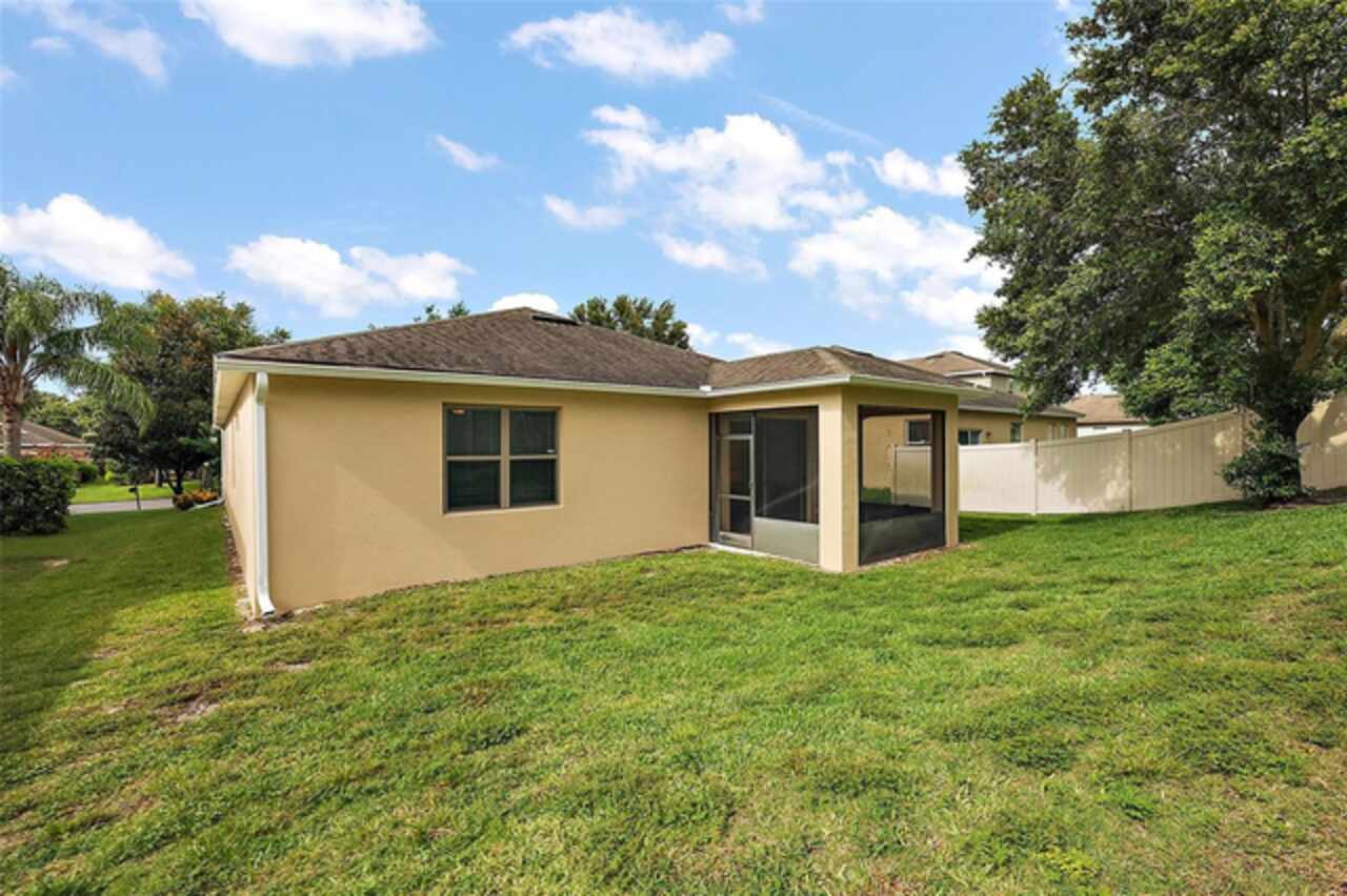 Welcome to Sullivan Ranch, a gated community in the beautiful Mount Dora. This single-story home has 3 bedrooms, 2 bathrooms, a den/office, and a 2-car garage, with a total of 2, 164 square feet of living space. When you arrive, you'll see a fresh coat of paint on the outside. Inside, a wide hallway welcomes you, leading past the den/office to two guest bedrooms and the second bathroom. In the center of the home is an open area with the kitchen, dining space, and living room—great for relaxing or entertaining. The kitchen features a large island with a breakfast bar. Sliding glass doors open to a screened porch that overlooks your private backyard. The home has a split floor plan, with the primary suite tucked away at the back of the home for privacy. The primary bedroom includes a bathroom with a large walk-in shower and a huge walk-in closet. Just off the garage, you'll find a mudroom/drop zone and an indoor laundry room with a utility sink for extra convenience. Recent updates include durable Vinyl flooring throughout the main areas. Sullivan Ranch offers plenty of amenities, like a clubhouse, a junior Olympic-sized pool, a dog park, playgrounds, and scenic hiking trails. The home is just minutes from downtown Mount Dora, famous for its shops and restaurants. You also have easy access to Sanford and Orlando International airports, Downtown Orlando, theme parks, and the beaches on both coasts. Highways 453 and 429 make it simple to get around for work or fun. This wonderful home in a popular community is ready for you to move in and make it your own!