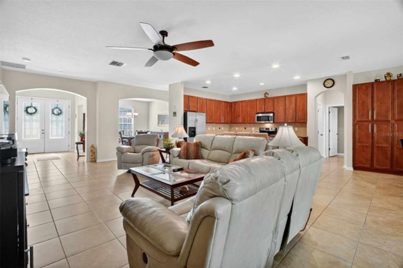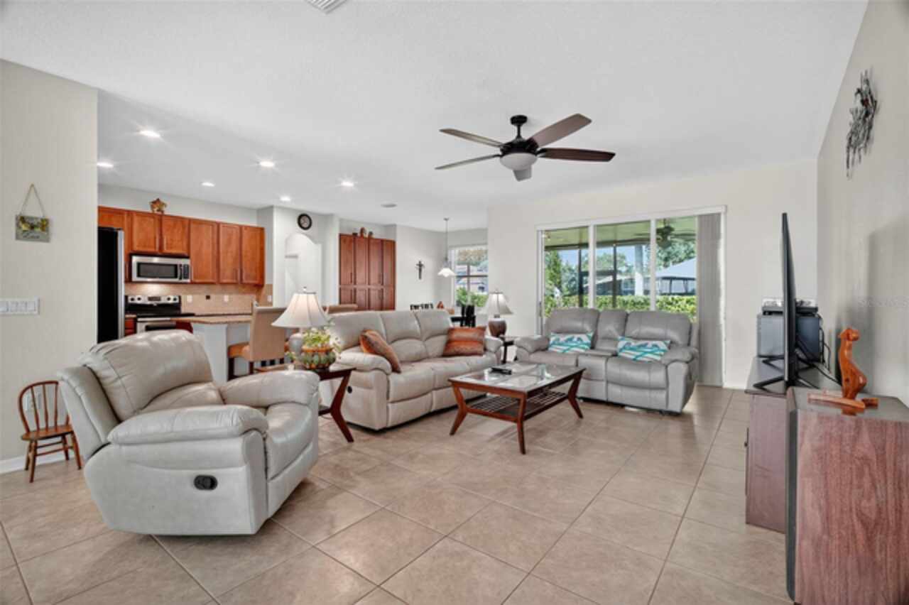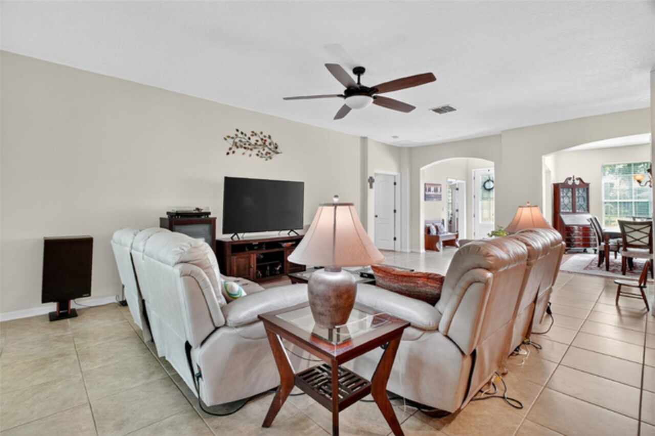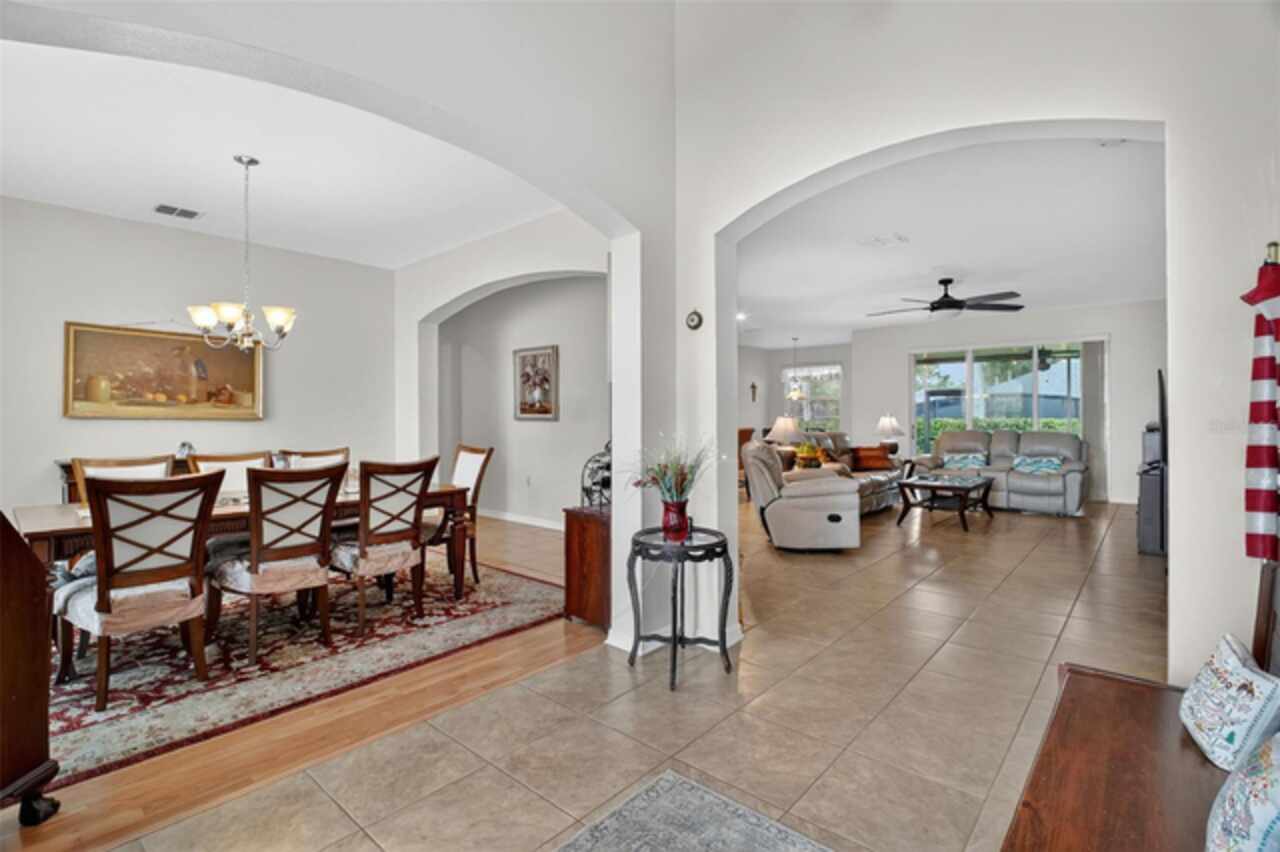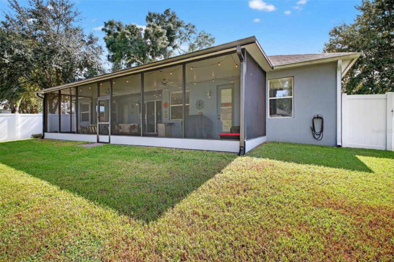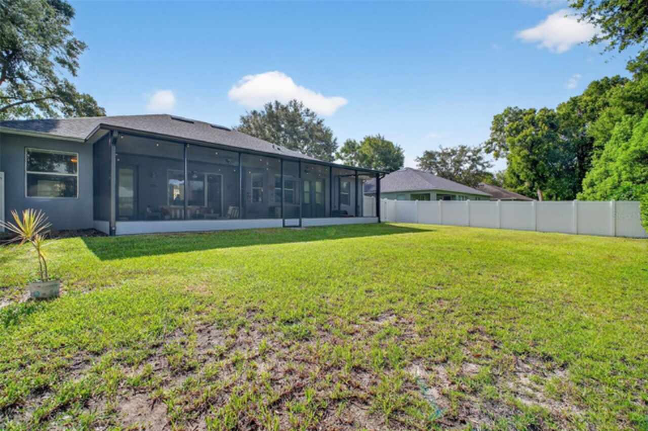 Under contract-accepting backup offers. Sprawling, ideal floorplan, single story with split bedroom configuration; 4-bedroom 3 bath M/I home Berkley II model. Fresh exterior paint, custom pavers, corner fenced lot with an oversized 3 car garage with opener leads to interior utility room with washer, dryer and more storage. Double designer exterior doors bring you to the tiled foyer with a private office with French doors. A large formal dining room is convenient to the spacious kitchen and huge family room making it ideal for entertaining. The kitchen has granite surfaces, an electrical outlet for every counter appliance possible, stainless-steel appliances, large island with seating and so much pantry storage that covers an entire wall in the breakfast nook. Open, bright and inviting family room opens to the large, newly expanded screened porch that is like another room. The porch has a serene, private view of the fenced rear yard. Large secondary bedrooms are nestled on the other side of the home providing privacy and storage in their closets. Primary PRIVATE suite offers two large closets, sitting area with sliding glass doors, spa-inspired, large bathroom with garden tub and separate shower, dual vanities. Many upgrades include: expanded screened porch, interior paint, landscaping, new roof 8/2024, electrical panel, and wired for a generator, new AC 1/27/23, and hot water heater 11/08/22. Just bring your lifestyle, people, pets, and dreams to this wonderful community and home.