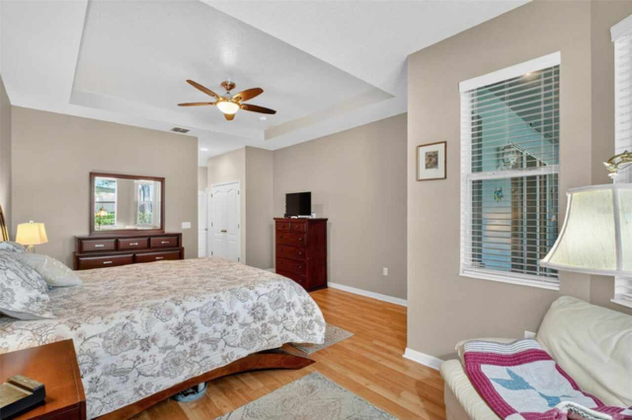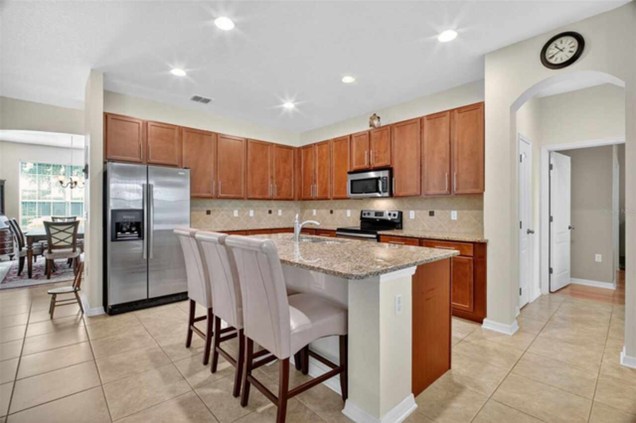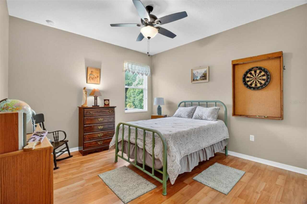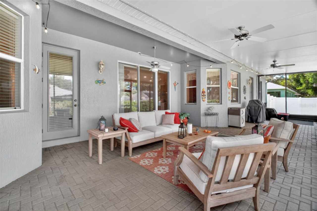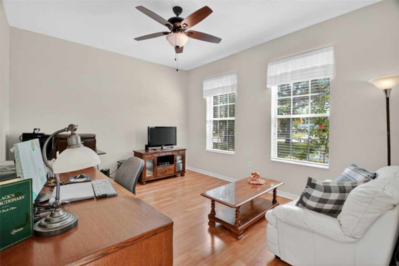Under contract-accepting backup offers. Sprawling, ideal floorplan, single story with split bedroom configuration; 4-bedroom 3 bath M/I home Berkley II model. Fresh exterior paint, custom pavers, corner fenced lot with an oversized 3 car garage with opener leads to interior utility room with washer, dryer and more storage. Double designer exterior doors bring you to the tiled foyer with a private office with French doors. A large formal dining room is convenient to the spacious kitchen and huge family room making it ideal for entertaining. The kitchen has granite surfaces, an electrical outlet for every counter appliance possible, stainless-steel appliances, large island with seating and so much pantry storage that covers an entire wall in the breakfast nook. Open, bright and inviting family room opens to the large, newly expanded screened porch that is like another room. The porch has a serene, private view of the fenced rear yard. Large secondary bedrooms are nestled on the other side of the home providing privacy and storage in their closets. Primary PRIVATE suite offers two large closets, sitting area with sliding glass doors, spa-inspired, large bathroom with garden tub and separate shower, dual vanities. Many upgrades include: expanded screened porch, interior paint, landscaping, new roof 8/2024, electrical panel, and wired for a generator, new AC 1/27/23, and hot water heater 11/08/22. Just bring your lifestyle, people, pets, and dreams to this wonderful community and home.
