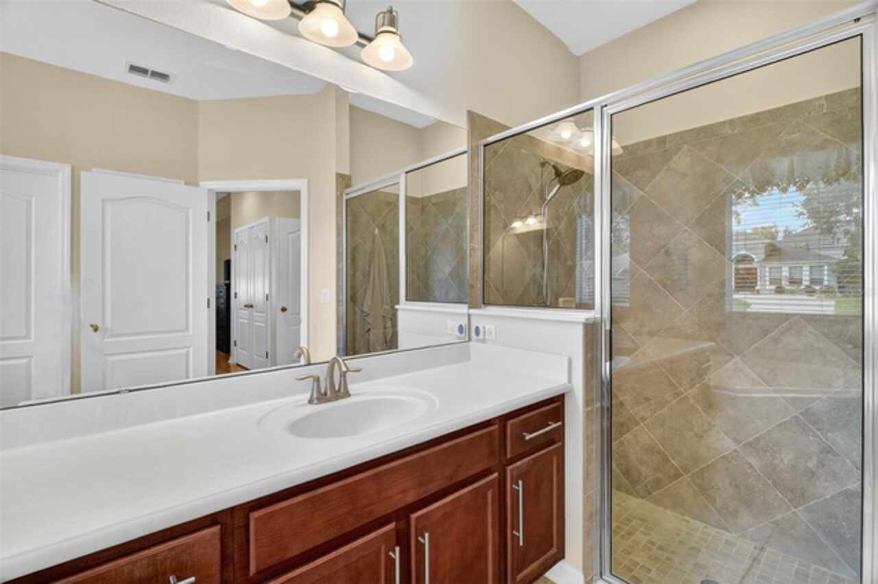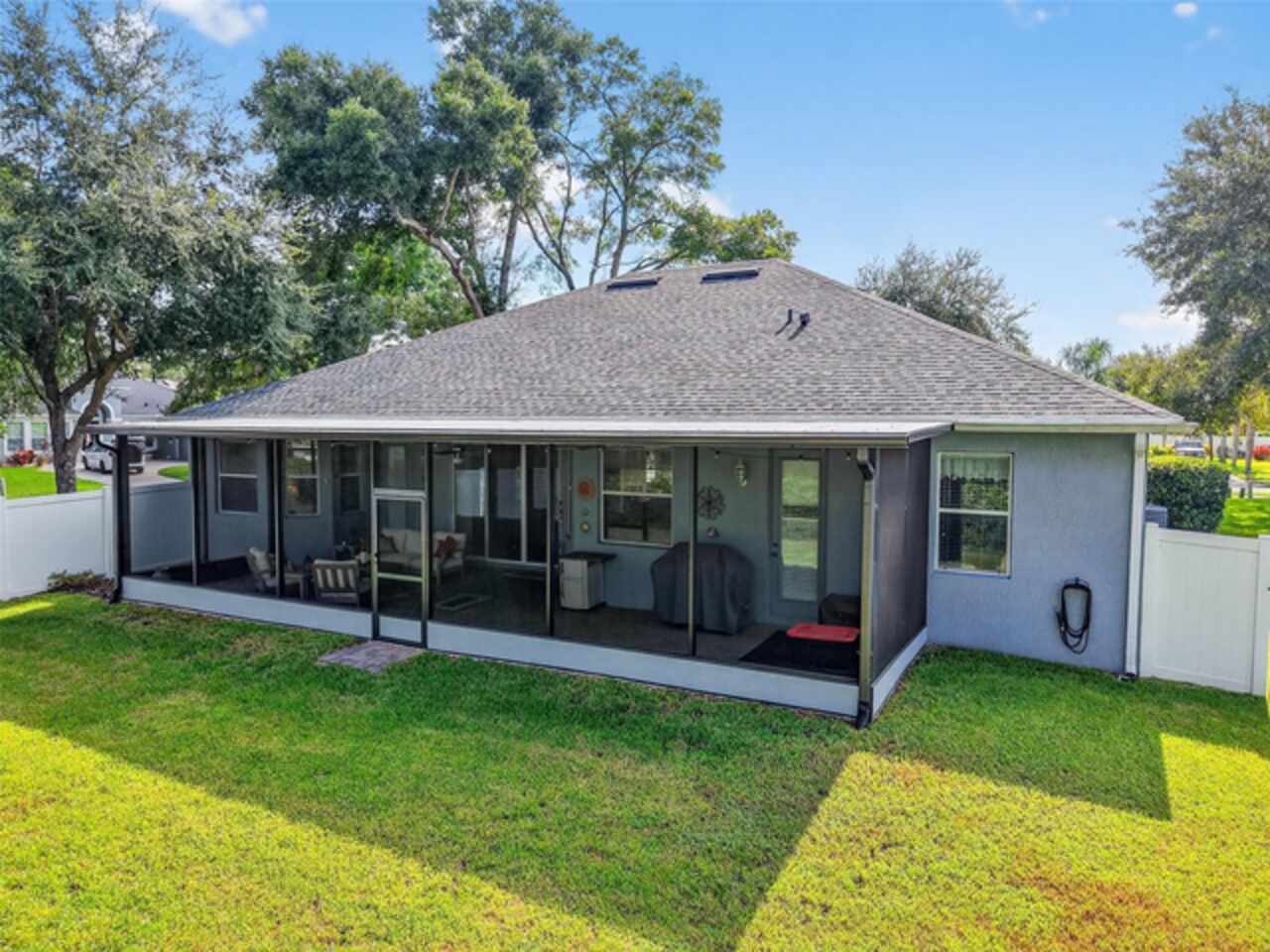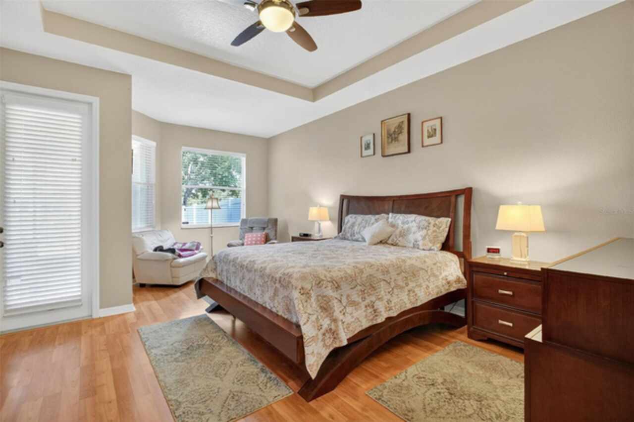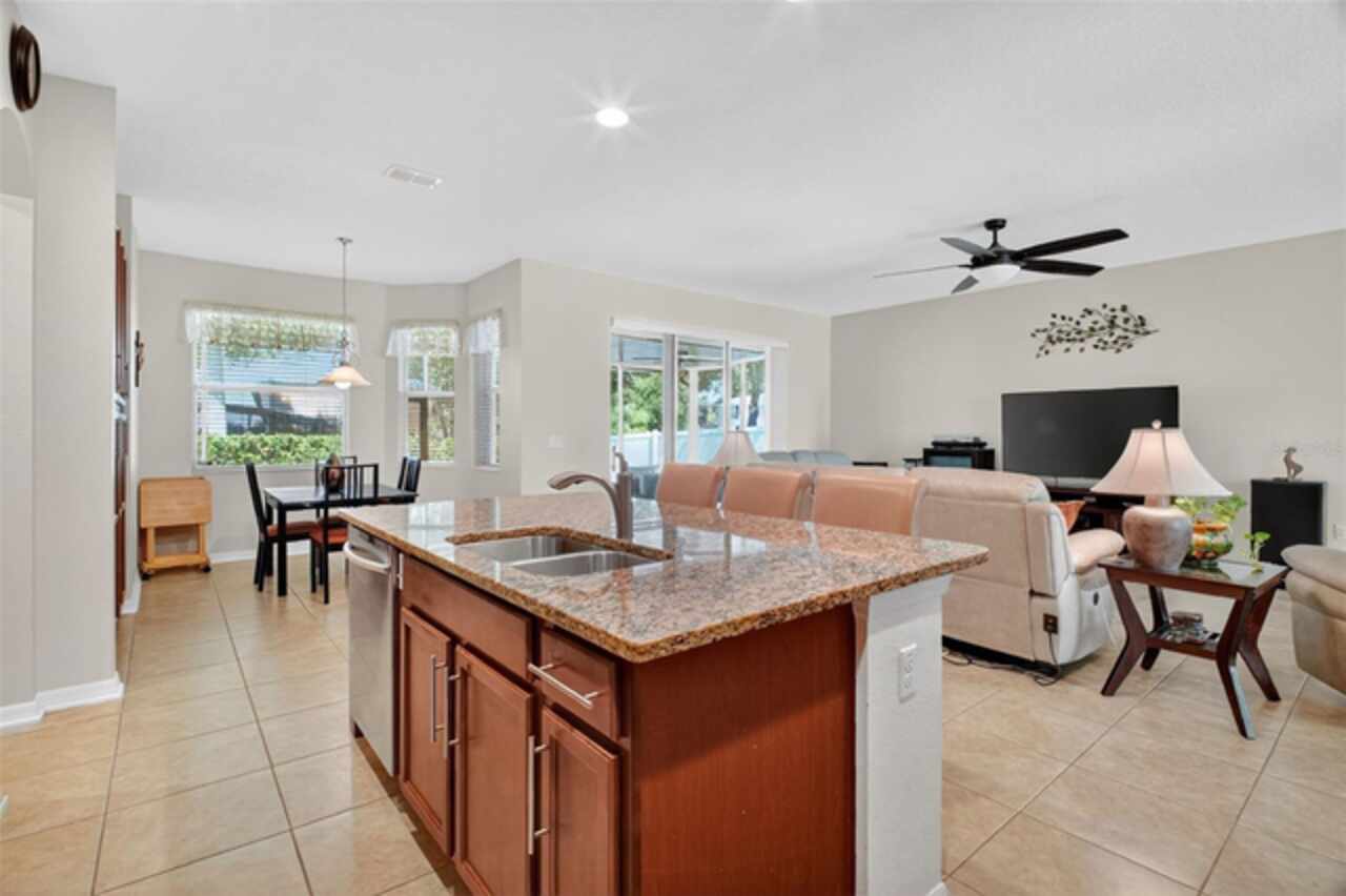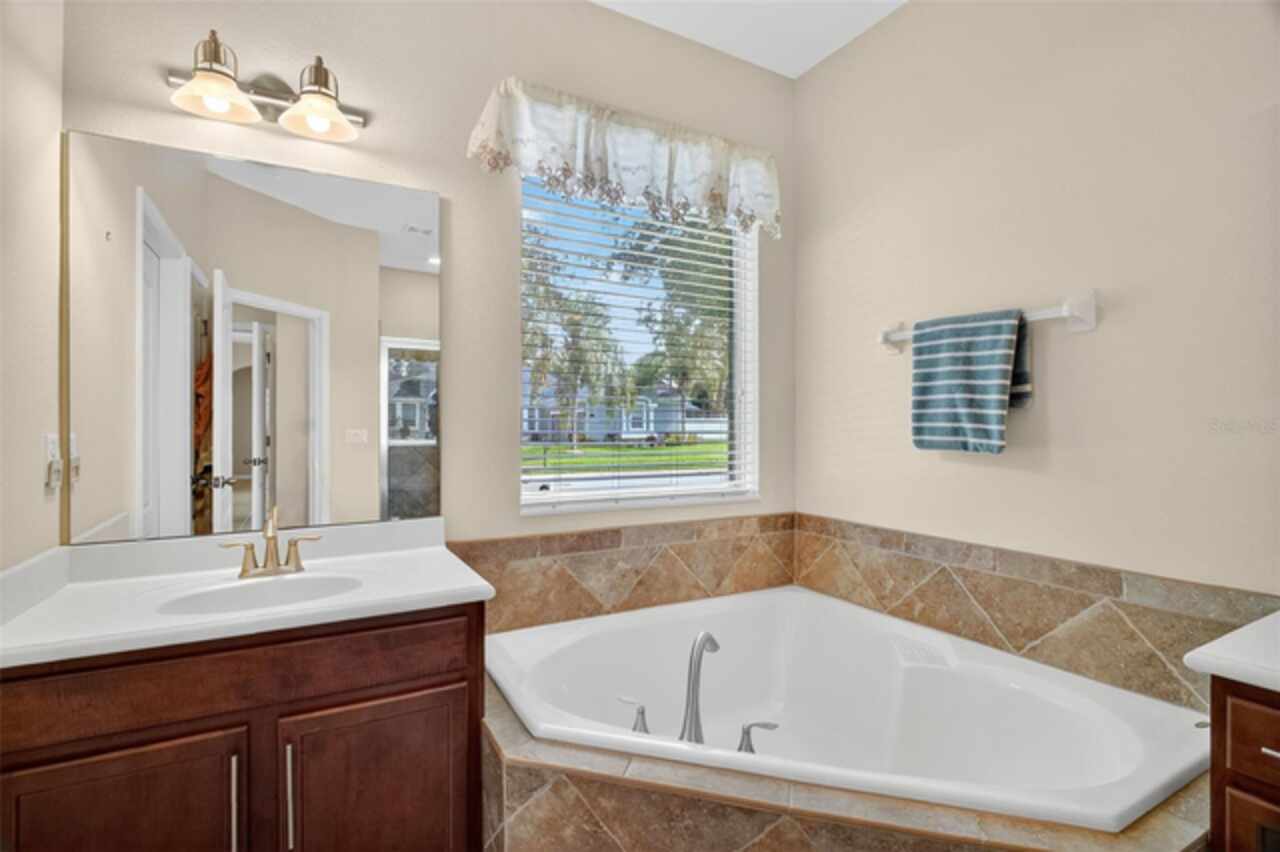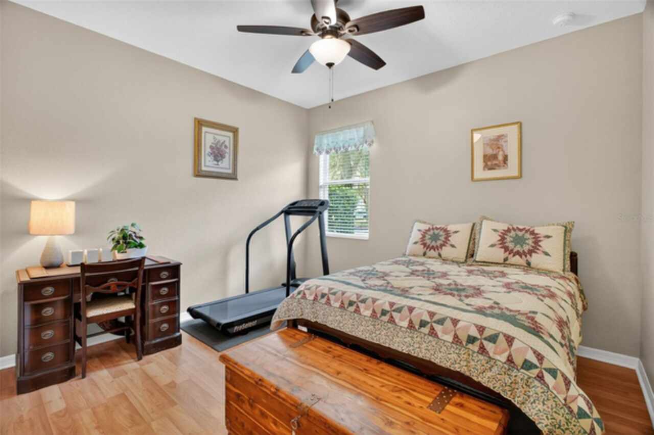 Under contract-accepting backup offers. Sprawling, ideal floorplan, single story with split bedroom configuration; 4-bedroom 3 bath M/I home Berkley II model. Fresh exterior paint, custom pavers, corner fenced lot with an oversized 3 car garage with opener leads to interior utility room with washer, dryer and more storage. Double designer exterior doors bring you to the tiled foyer with a private office with French doors. A large formal dining room is convenient to the spacious kitchen and huge family room making it ideal for entertaining. The kitchen has granite surfaces, an electrical outlet for every counter appliance possible, stainless-steel appliances, large island with seating and so much pantry storage that covers an entire wall in the breakfast nook. Open, bright and inviting family room opens to the large, newly expanded screened porch that is like another room. The porch has a serene, private view of the fenced rear yard. Large secondary bedrooms are nestled on the other side of the home providing privacy and storage in their closets. Primary PRIVATE suite offers two large closets, sitting area with sliding glass doors, spa-inspired, large bathroom with garden tub and separate shower, dual vanities. Many upgrades include: expanded screened porch, interior paint, landscaping, new roof 8/2024, electrical panel, and wired for a generator, new AC 1/27/23, and hot water heater 11/08/22. Just bring your lifestyle, people, pets, and dreams to this wonderful community and home.