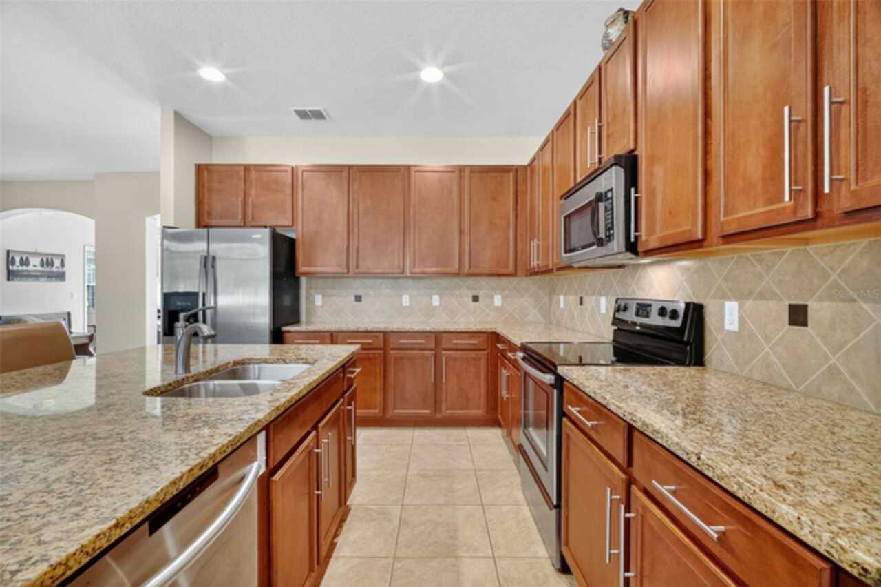 High Ceilings, Kitchen/Family Room Combo, Solid Wood Cabinets, Split Bedroom, Stone Counters, Tray Ceiling(s), Walk-In Closet(s)