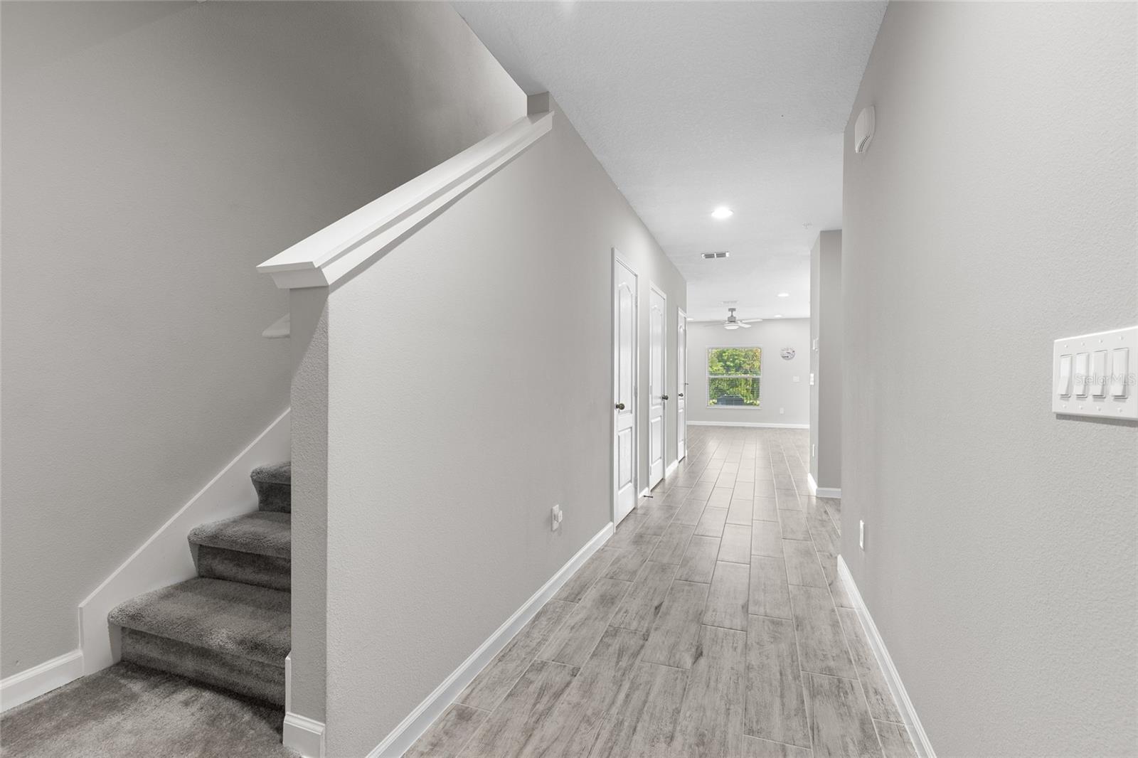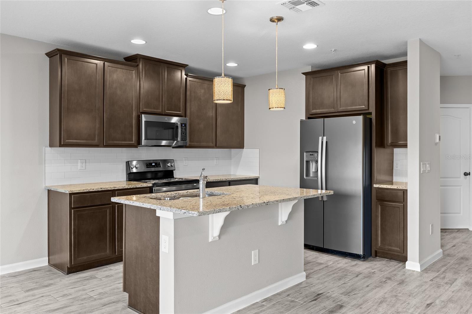 BELOW MARKET GEM!! Immaculate 3-Year-Old Townhome with Garage and Upgrades Throughout! Seller will pay the first 6 months of the buyers HOA and for a 6 month AHS home warranty for buyers peace of mind. Welcome to this beautiful, move-in ready townhouse that shows like new! Only 3 years old and filled with thoughtful upgrades, this home combines modern design, low-maintenance living, and everyday comfort. Step inside to find wood-look tile flooring throughout the first floor, creating a warm and elegant flow. The open-concept kitchen features 42-inch cabinetry, granite countertops, a spacious island, and stainless steel appliances — perfect for cooking, entertaining, or casual dining. The main level also includes a half bath, under-stair storage, and a separate laundry room for added convenience. Upstairs, a versatile loft or bonus room provides the perfect space for a home office, playroom, or media area. The primary suite offers a large walk-in closet and a beautiful en-suite bathroom, while the additional bedrooms are generously sized with access to a stylish guest bath. With a private garage, immaculate condition, and upgraded finishes throughout, this home delivers incredible value and peace of mind. Enclosed patio on the back of house, with a beautiful pond and wooded area view. Ideally located near shopping, dining, and major highways — this stunning townhome is a must-see for buyers looking for style, space, and convenience at a below-market price.