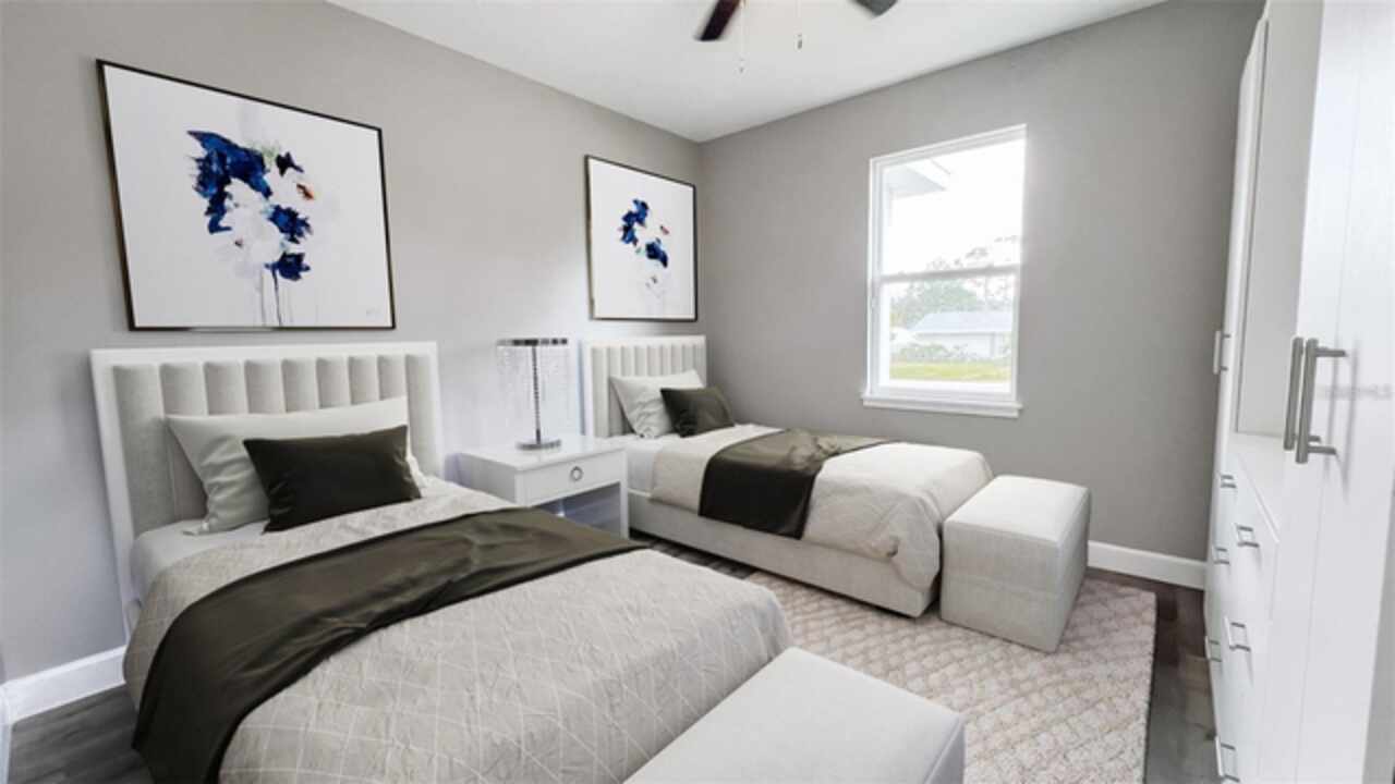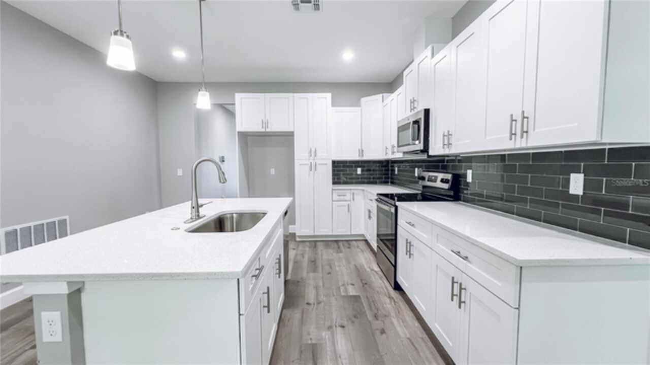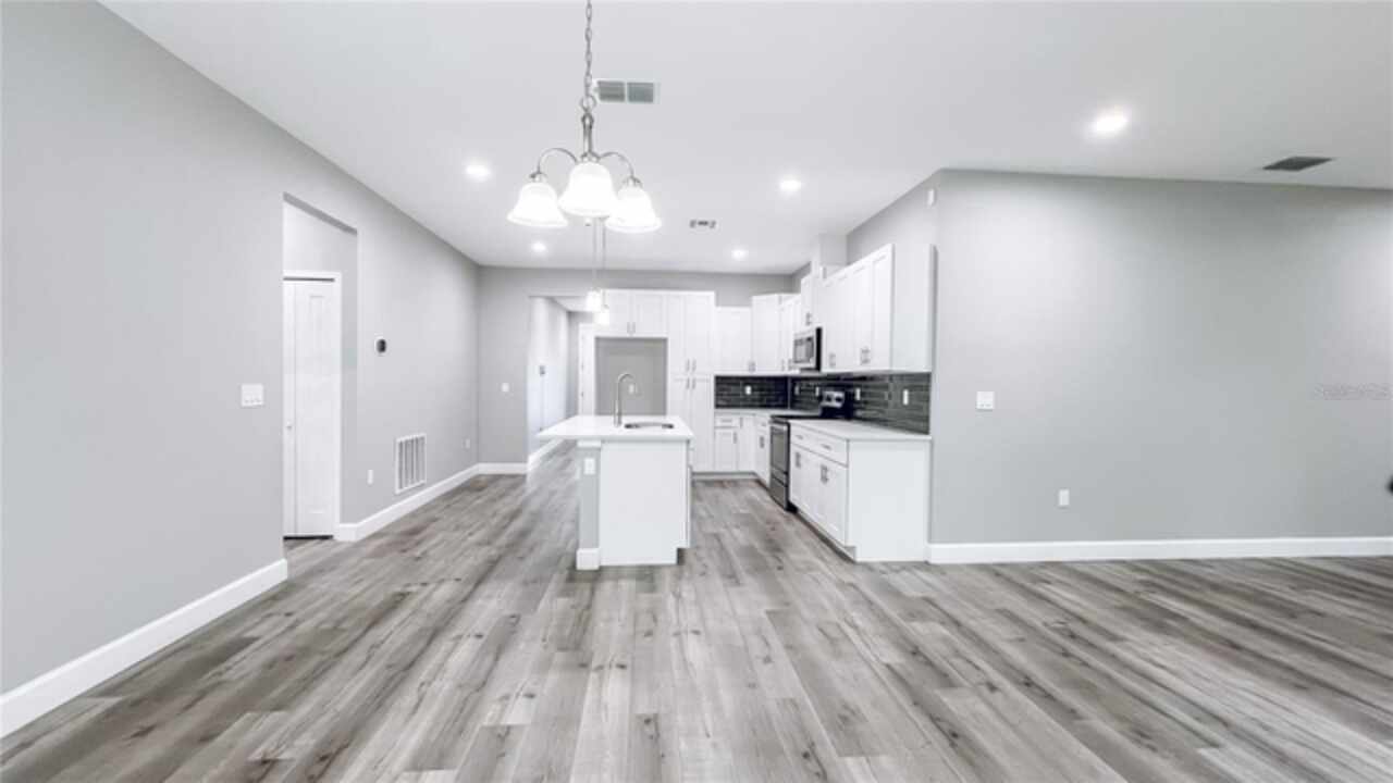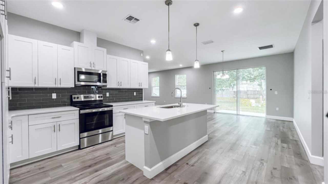 One or more photo(s) has been virtually staged. Built in 2022, this modern 4-bedroom, 3-bathroom home offers 1, 938 sqft of living space with a bright open floor plan. The stylish kitchen features quartz countertops, stainless steel appliances, ample cabinetry, and an island with seating—perfect for entertaining. The spacious family room flows seamlessly for gatherings, while the owner’s suite includes a custom walk-in closet and private bath. Additional highlights include an indoor laundry room, a large backyard with endless potential, a personal well, and a soft water system. With no HOA and a prime location near schools, shops, and just 30 minutes to SeaWorld and Universal, this move-in ready home is a must-see!