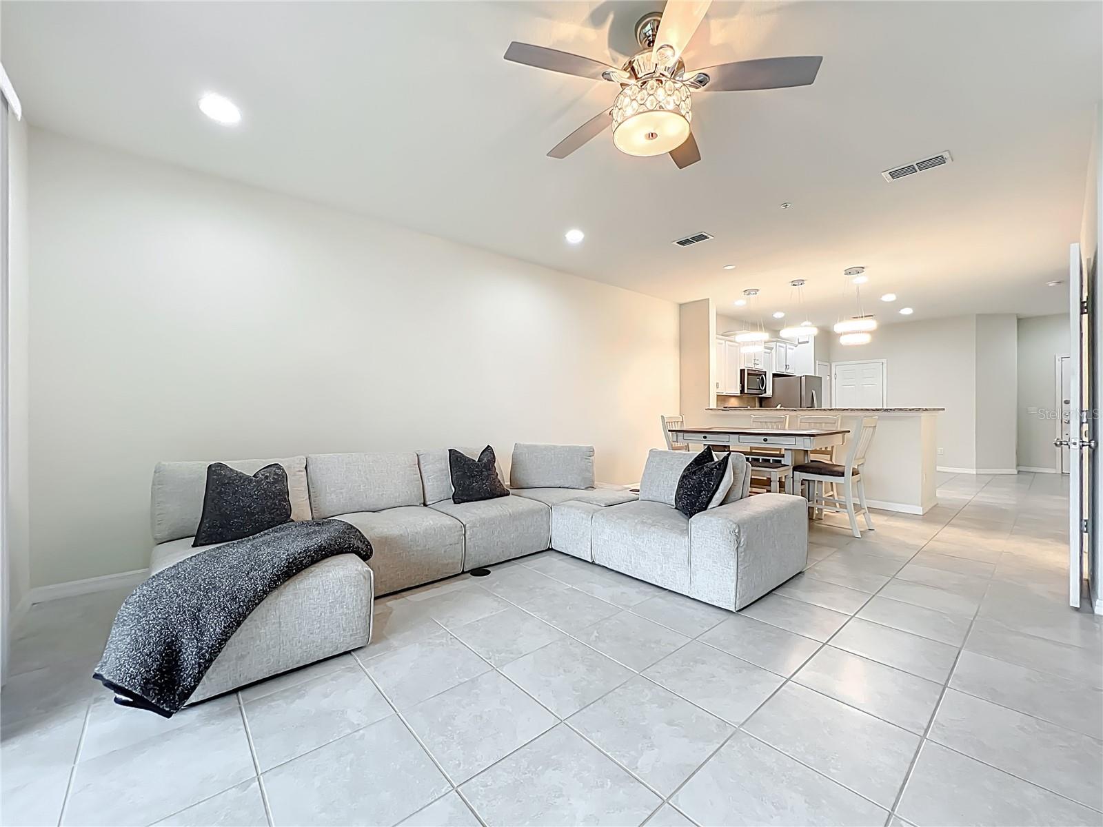 Ceiling Fans(s), Living Room/Dining Room Combo, Open Floorplan, PrimaryBedroom Upstairs, Solid Surface Counters, Split Bedroom, Stone Counters, Thermostat, Walk-In Closet(s), Window Treatments