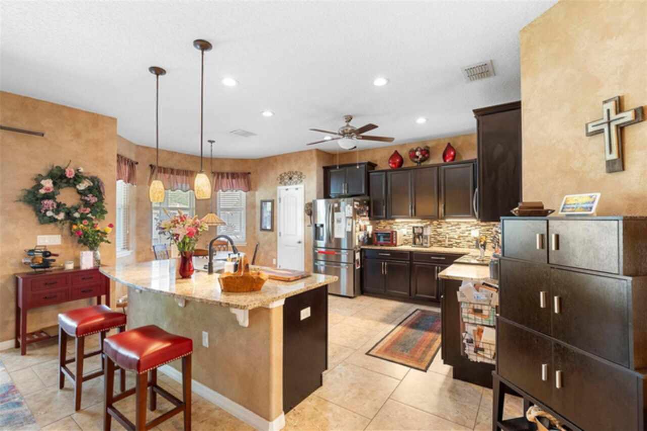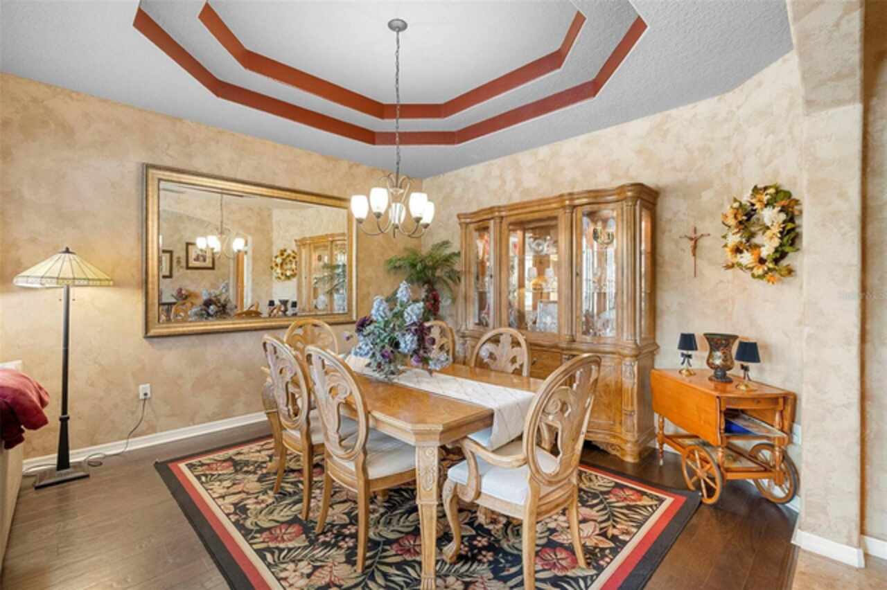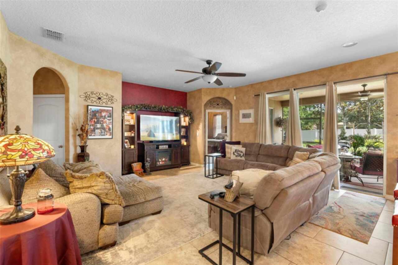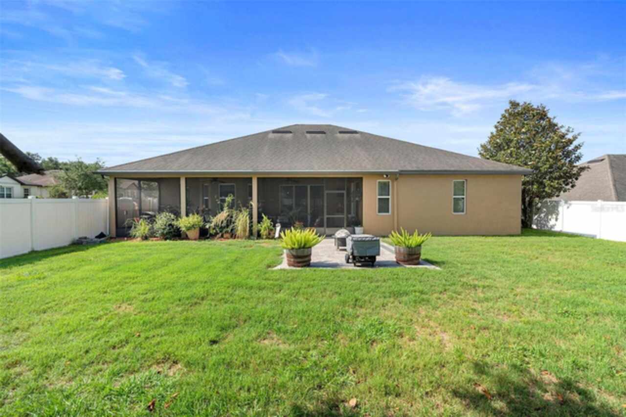 Prepare yourself to fall in love with this stunning, large corner lot, spacious home in a highly sought after community of Chandler Estates. This spacious 4-bedroom, 3-bathroom home captures you when you walk into the beautiful, welcoming faux painted home, as you enter the foyer which opens to a combined living room and dining room with a mixture of beautiful tiled and manufactured wood looking laminate flooring, which offers a great space for entertaining. Each bedroom and garage entrance have a beautiful alcove entering each area. This functional layout flows seamlessly into the family room and recently upgraded kitchen. The kitchen offers solid wood cabinetry, beautiful granite countertops, with a newly installed (in 2024) backsplash, a large center island, tile floors with a breakfast nook, all great for entertaining with a new dishwasher installed in 2023! Just off the kitchen area, is a spacious laundry room with newly installed cabinets (2024) and a nice folding table with bottom storage. The family room, which is also off the kitchen is ready for you to wind down at the end of day, offering plenty of space for all your family and friends. While one of the extra bedrooms, has a full bathroom off the bedroom, the other 2 bedrooms share one of the other full bathrooms. The master bathroom screams relaxation, as soon as you enter, with a large soaking tub and a large walk in shower with safety bars installed in it, along with two sink/vanities. The master bedroom offers two walk-in closets with plenty of space for all of your clothes and shoes, along with a tray ceiling giving the room a nice touch, the carpet in the master bedroom was new in 2024. Step out to a large, screened lanai/porch, (recently screened in 2024), where you can sip on morning coffee or unwind after work with our beautiful Florida evenings. The large back yard with a newly laid paver area (2024), offers a nice outdoor space, which will be great on a nice cooler evening with a fire pit gathering. roasting marsh mellows or grilling out. There is plenty of room to have a pool installed as well. Additional highlights, the home has a large 3 car garage for vehicles and storage, alarm system, exterior painting done in 2024. The home is close to shopping, restaurants and the 429 and just minutes away from beautiful Mount Dora. Put this beautiful home on your list to see and make it yours!!