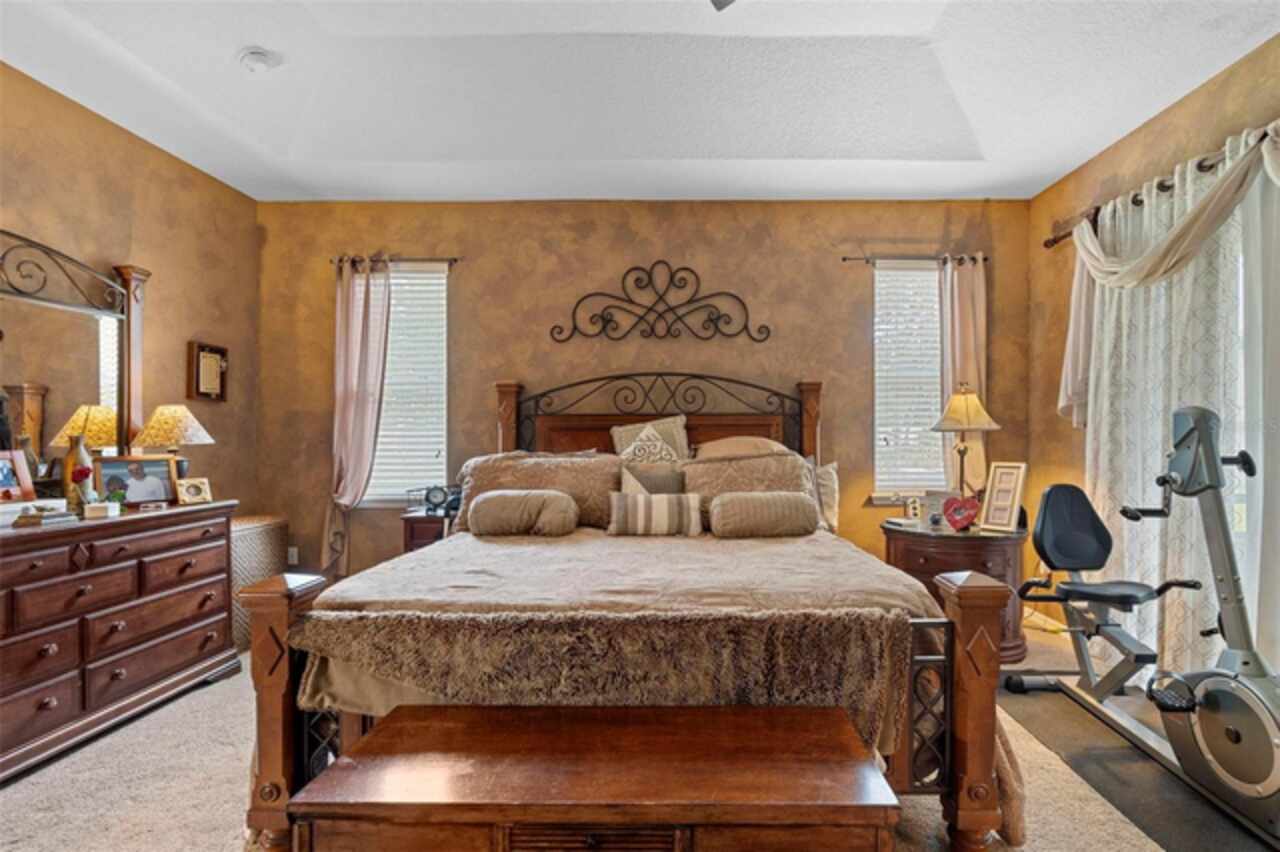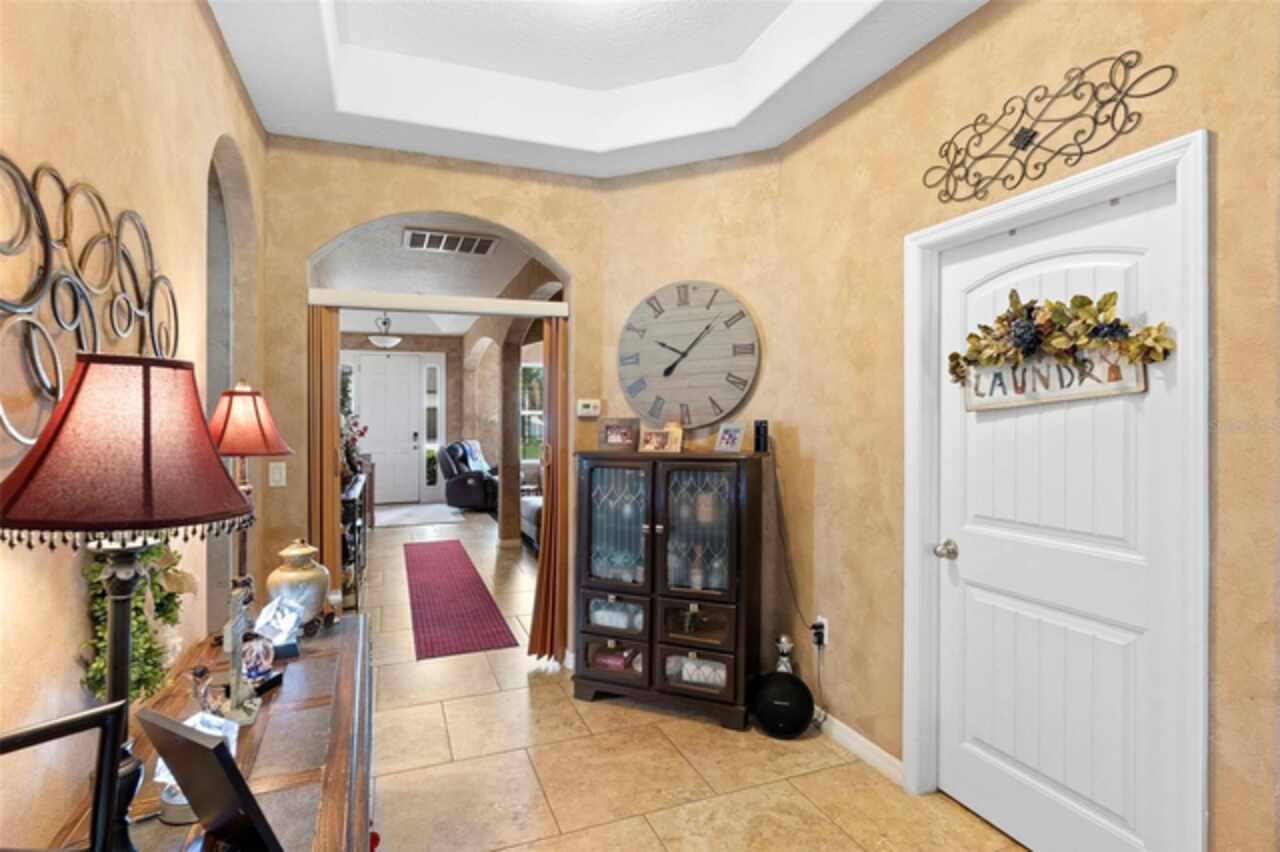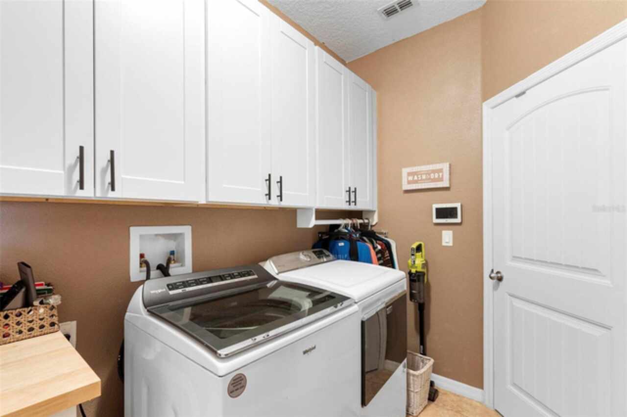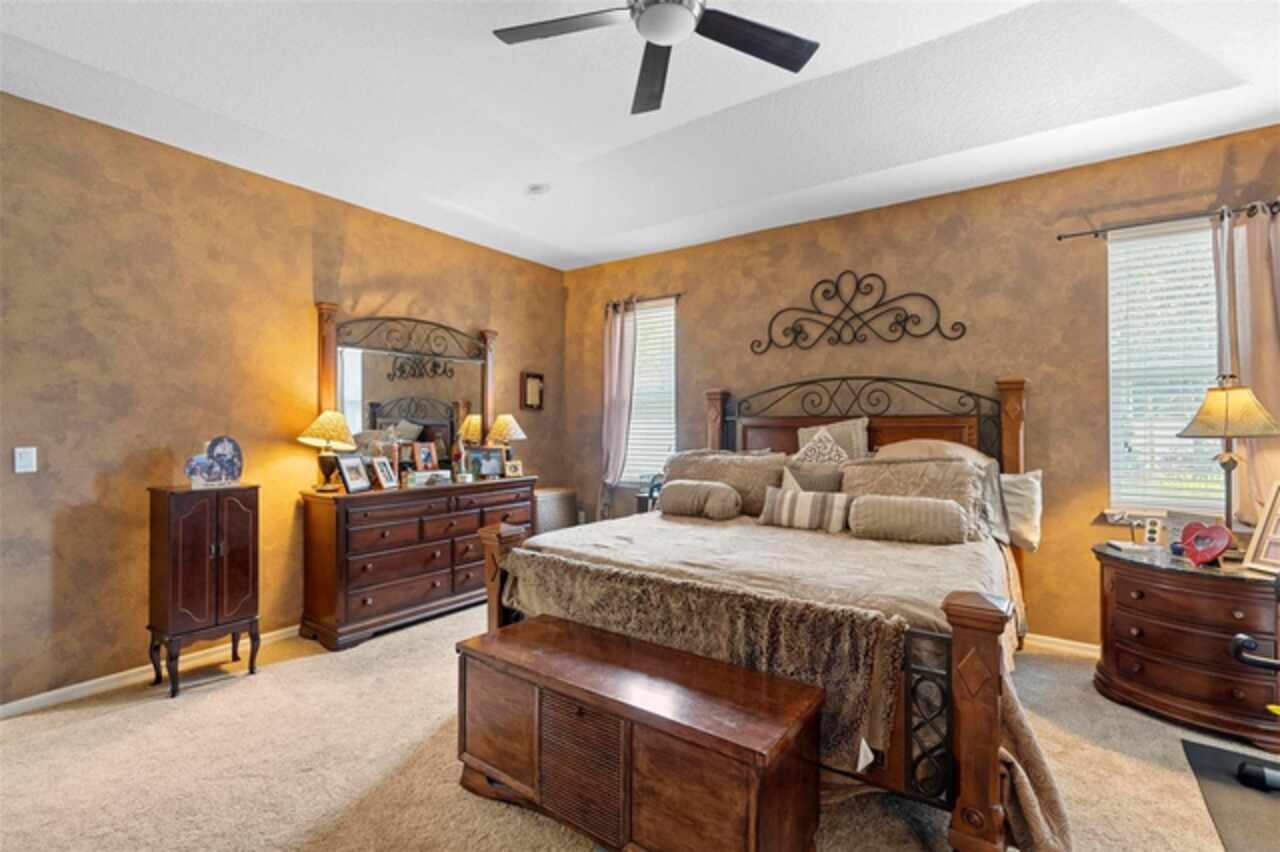 Prepare yourself to fall in love with this stunning, large corner lot, spacious home in a highly sought after community of Chandler Estates. This spacious 4-bedroom, 3-bathroom home captures you when you walk into the beautiful, welcoming faux painted home, as you enter the foyer which opens to a combined living room and dining room with a mixture of beautiful tiled and manufactured wood looking laminate flooring, which offers a great space for entertaining. Each bedroom and garage entrance have a beautiful alcove entering each area. This functional layout flows seamlessly into the family room and recently upgraded kitchen. The kitchen offers solid wood cabinetry, beautiful granite countertops, with a newly installed (in 2024) backsplash, a large center island, tile floors with a breakfast nook, all great for entertaining with a new dishwasher installed in 2023! Just off the kitchen area, is a spacious laundry room with newly installed cabinets (2024) and a nice folding table with bottom storage. The family room, which is also off the kitchen is ready for you to wind down at the end of day, offering plenty of space for all your family and friends. While one of the extra bedrooms, has a full bathroom off the bedroom, the other 2 bedrooms share one of the other full bathrooms. The master bathroom screams relaxation, as soon as you enter, with a large soaking tub and a large walk in shower with safety bars installed in it, along with two sink/vanities. The master bedroom offers two walk-in closets with plenty of space for all of your clothes and shoes, along with a tray ceiling giving the room a nice touch, the carpet in the master bedroom was new in 2024. Step out to a large, screened lanai/porch, (recently screened in 2024), where you can sip on morning coffee or unwind after work with our beautiful Florida evenings. The large back yard with a newly laid paver area (2024), offers a nice outdoor space, which will be great on a nice cooler evening with a fire pit gathering. roasting marsh mellows or grilling out. There is plenty of room to have a pool installed as well. Additional highlights, the home has a large 3 car garage for vehicles and storage, alarm system, exterior painting done in 2024. The home is close to shopping, restaurants and the 429 and just minutes away from beautiful Mount Dora. Put this beautiful home on your list to see and make it yours!!