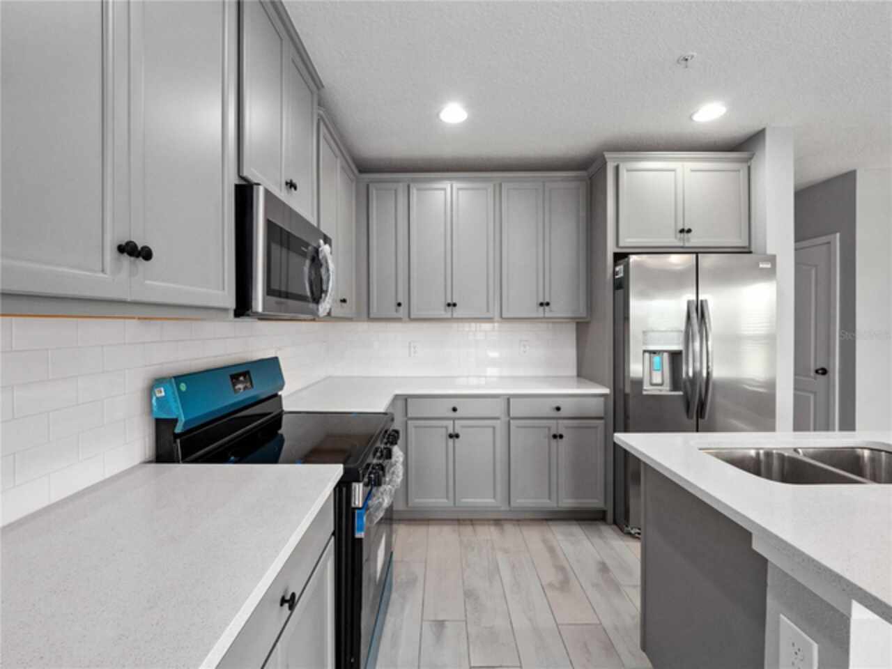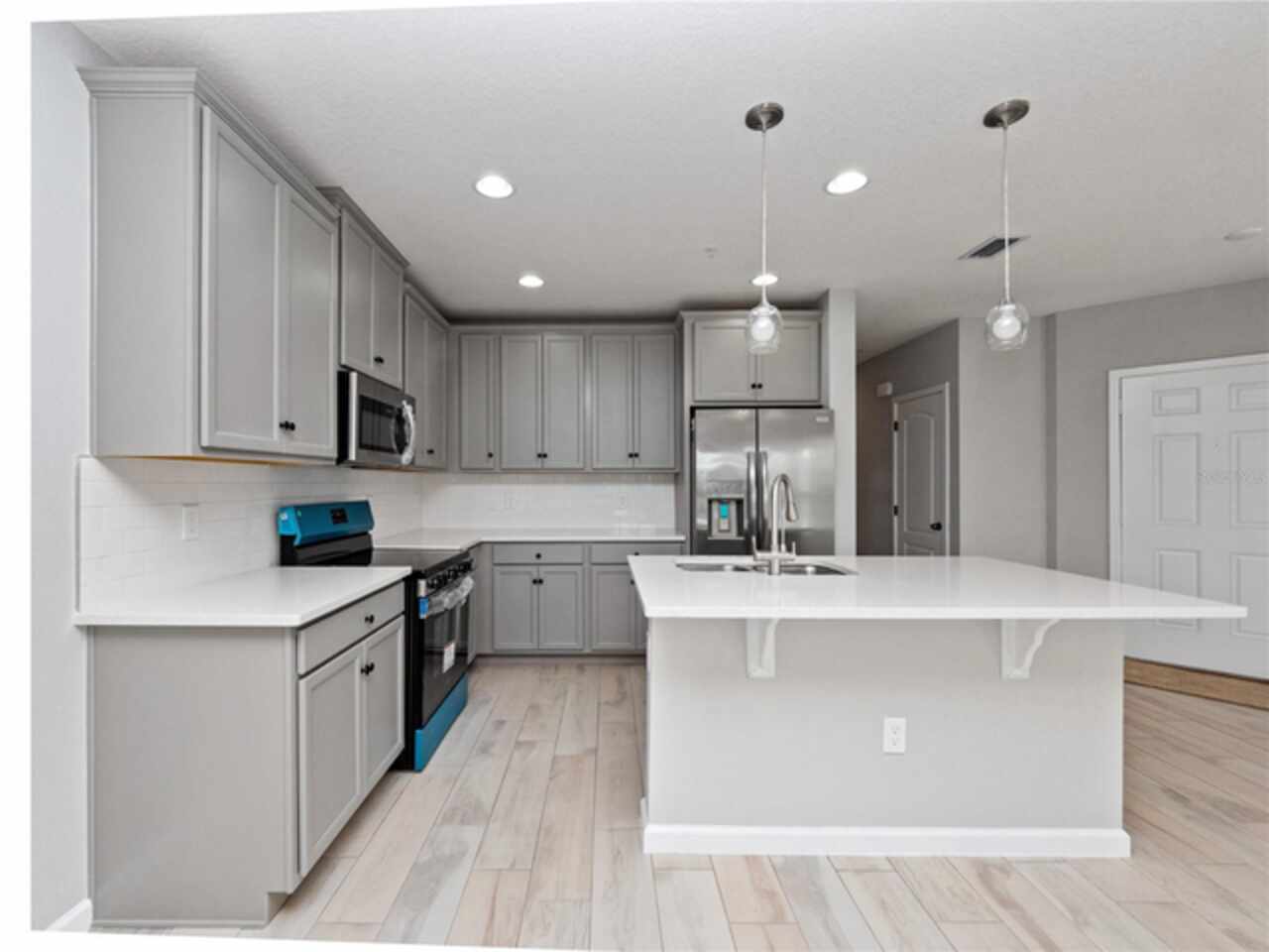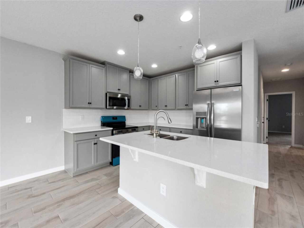 This Beautifull 2022 Townhome is a 4 Bedroom, and 3 Bathroom is a "Florida Contemporary" Style. The first floor includes a large open concept great room/kitchen combination with "Wood plank" tile throughout. The kitchen is equipped with a center island, granite countertop in kitchen & quartz countertops in bathrooms, crown molding 42" cabinets, subway tile kitchen backsplash and stainless-steel appliances (Fridge, dishwasher, over the range microwave and range). A convenient full bath is located just off the great room and adjacent to a private first floor bedroom. There is access from the great room sliding glass door to the concrete patio offering additional outdoor living space where you can enjoy sunrises and sunsets also a walking/biking trail located just steps away from the back patio. The second floor oversized Master suite has ample room for larger furnishings, walk-in closet and adjoining master bath featuring double sinks, quartz countertops and large walk-in shower. 2 bedrooms are located towards the rear of the home and share a full bath. The second-floor loft makes a great entertainment area or home office space. Please call today and make your appointment!
