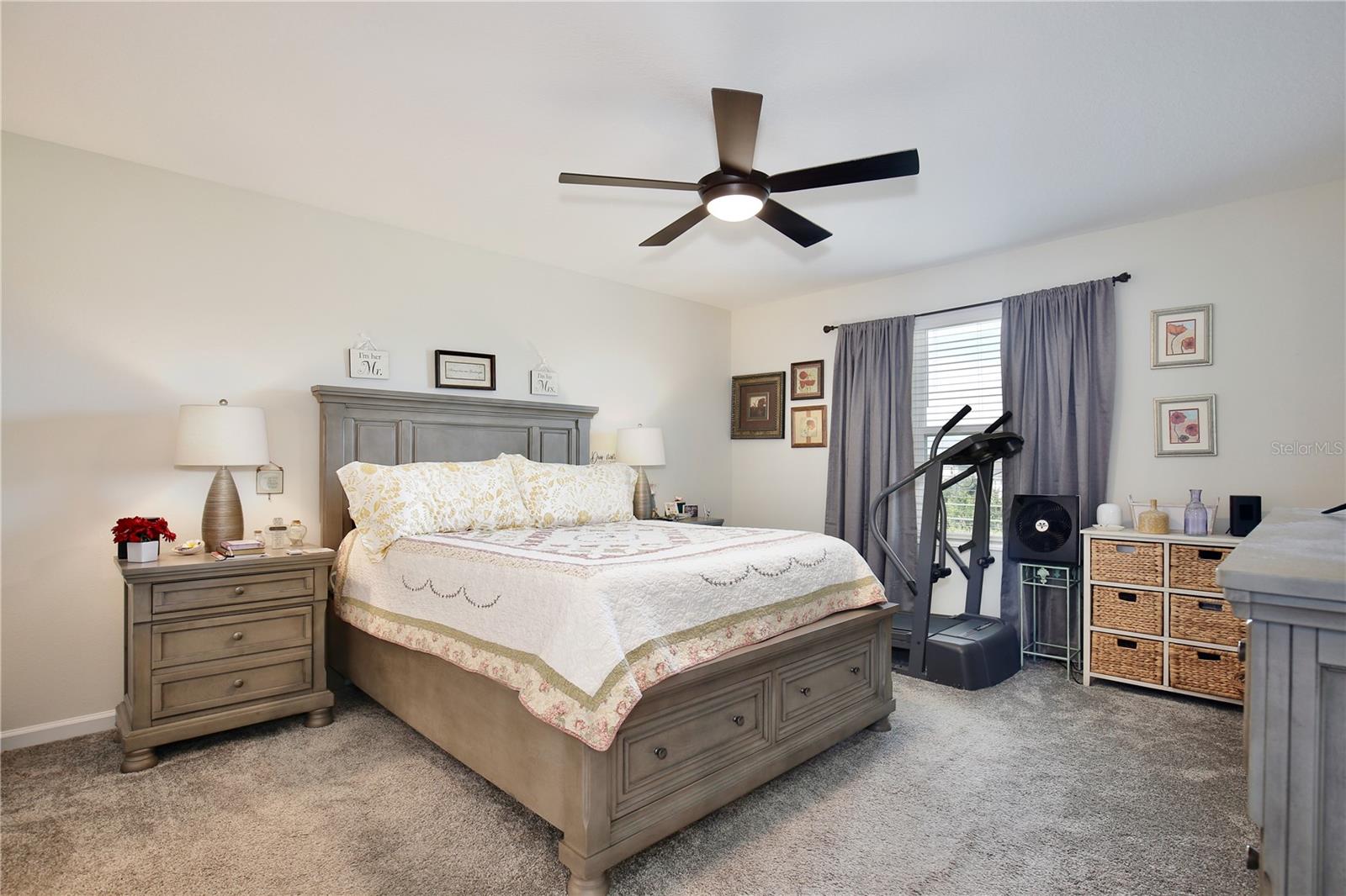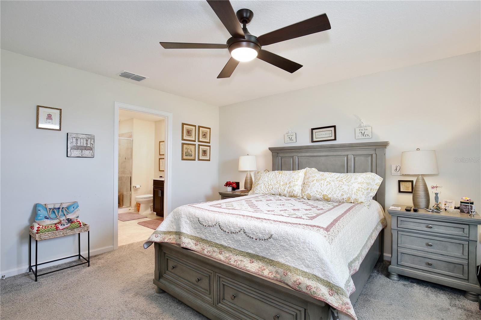 Ceiling Fans(s), High Ceilings, Kitchen/Family Room Combo, Open Floorplan, Primary Bedroom Main Floor, Solid Surface Counters, Solid Wood Cabinets, Thermostat, Walk-In Closet(s)