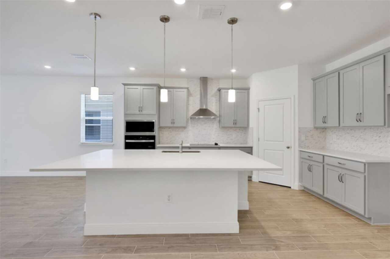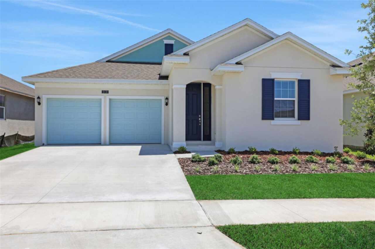 Under Construction. The Anna Maria floorplan is a thoughtfully designed one-story home featuring four bedrooms and two and a half bathrooms, perfect for comfortable family living. The open-concept layout highlights a spacious great room that flows seamlessly into the kitchen and dining area, making it ideal for gatherings and relaxation. The primary bedroom offers privacy with a well-appointed ensuite and a large walk-in closet. Additionally, the home includes a covered patio for outdoor enjoyment and a convenient two-car garage, all contributing to the 2, 235 square feet of carefully utilized living space.
