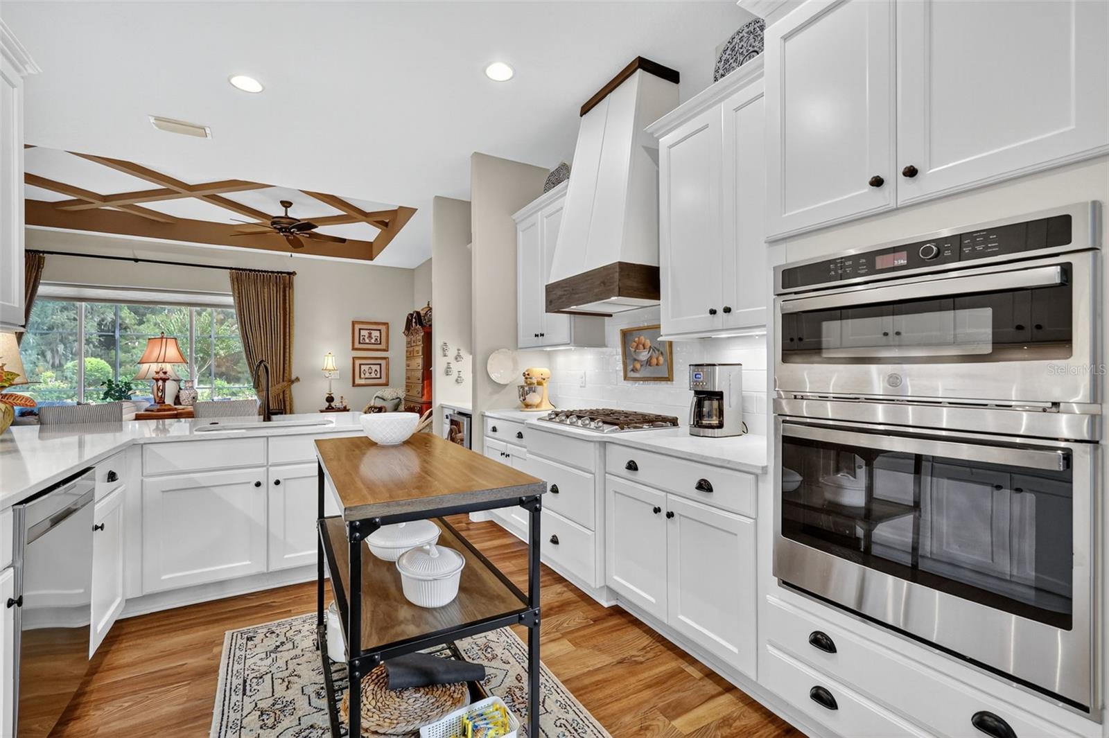 Welcome to 8464 Bridgeport Bay Circle in the highly sought-after Lakes of Mount Dora. This beautifully maintained Granada model features 2 bedrooms, 2 baths, a den, and a private pool, designed for those who appreciate elegant, thoughtful details and a vibrant 55+ active adult lifestyle. This 2, 033-square-foot home centers around a great room, where soaring coffered ceilings and abundant natural light create a bright, inviting atmosphere. A cozy reading nook provides the perfect spot for quiet reflection or enjoying a favorite book, while still being part of the open, flowing layout ideal for entertaining and daily living. Built in 2018, the home features an entertainer’s dream kitchen anchored by GE Profile stainless steel appliances, including a 5-burner natural gas cooktop with a custom-designed range hood, pristine quartz countertops, 42-inch cabinetry, and subtle under-cabinet lighting. A dry bar with wine fridge adds a touch of sophistication, while the eat-in area, highlighted by a sun-drenched bay window with built-in bench, creates a cheerful, cozy spot for breakfast, snacks, or afternoon tea. An island with barstool seating provides additional casual dining and gathering space. The primary suite is a private oasis, offering ample space for a king-sized bed, dual vanities with quartz countertops, a curbless shower with built-in bench, and a private water closet. Elegant plantation shutters complete the space, offering customizable light and privacy. Access your private retreat through a wall of three glass pocket doors onto the lanai and private pool, seamlessly blending indoor comfort with outdoor leisure — perfect for morning coffee, entertaining, or relaxing in the Florida sun. Residents enjoy a wealth of resort-style amenities, including an 18, 000-square-foot clubhouse, resort-style pool, tennis and pickleball courts, bocce ball, a croquet lawn, four miles of interconnecting waterways, scenic trails, inviting fire pits, and gated RV and boat parking. The HOA fee of $280/month includes internet, cable, irrigation, and access to numerous clubs and activities. Golf enthusiasts will appreciate nearby access to the Country Club of Mount Dora, while the vibrant towns of Mount Dora and Eustis offer art galleries, festivals, restaurants, and shopping. For weekend adventures, beaches and theme parks are just a 45- to 60-minute drive away. This home seamlessly combines elegant living spaces, modern amenities, and an active lifestyle, making it ideal for those seeking comfort, leisure, and community in Central Florida’s Lakes of Mount Dora. Experience the perfect balance of indoor elegance and outdoor enjoyment, along with the myriad lifestyle opportunities of this welcoming 55+ community.