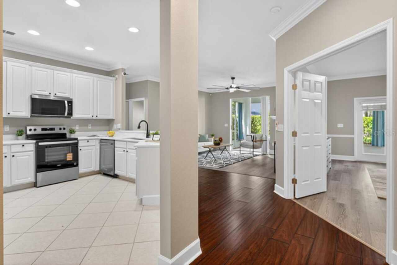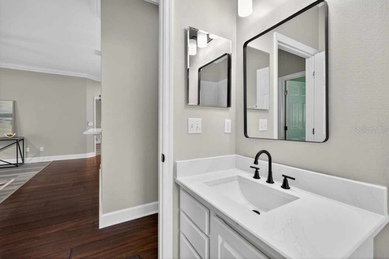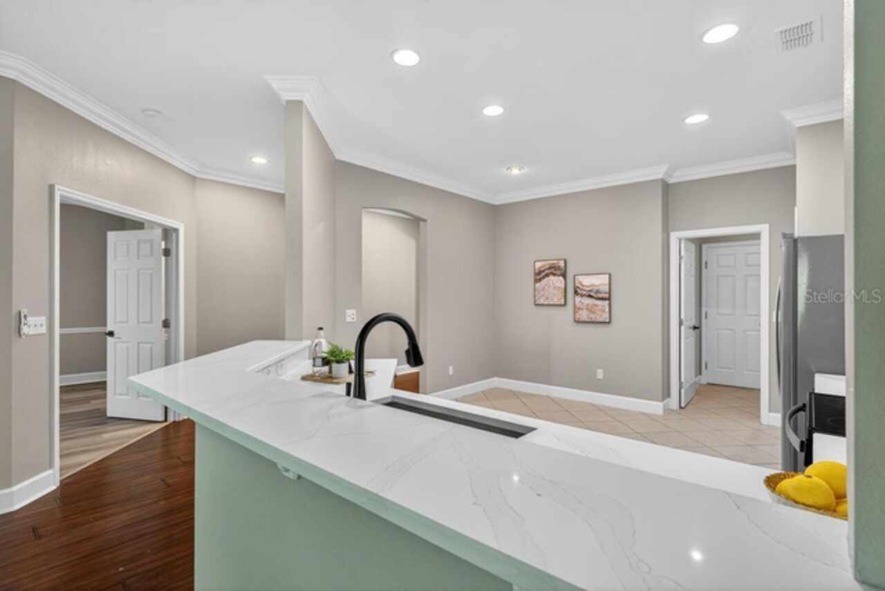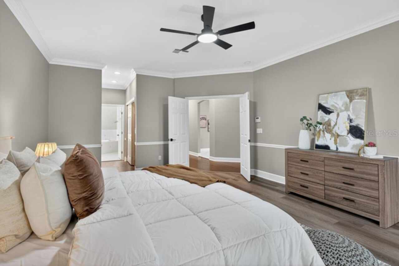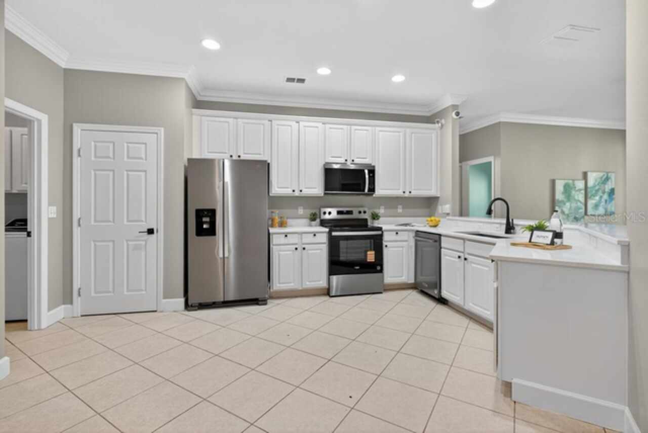 “A newly designed paver walkway with a custom retaining wall now leads you safely and beautifully to the front of this home.” Fully Renovated 4-Bedroom Apopka Retreat with Private In-Law Suite! Step into this stunning 4-bedroom, 3-bathroom home located on a desirable corner lot in a peaceful Apopka neighborhood. With 2, 196 sq ft of beautifully updated living space, this residence offers the perfect balance of comfort, functionality, and modern design—ideal for families or professionals alike. Freshly painted inside and out, the home boasts a crisp, contemporary look enhanced by new quartz countertops in the kitchen and all bathrooms, plus brand-new stainless steel appliances. The open-concept layout features crown molding, tile in wet areas, and laminated wood flooring throughout. The stylish upgrades continue with: Flat black modern faucets in all bathrooms and the kitchen New matte black door handles throughout the home Updated ceiling fans and lighting fixtures for a fresh, modern feel New landscaping and fresh sod for great curb appeal Roof (2020) | AC unit (2018) | Water heater (2020) The expansive 21x15 primary suite includes a luxurious en-suite bath with a jetted garden tub, separate shower, and private water closet. One of the secondary bedrooms includes its own private bath, making it perfect as an in-law suite or private guest space. Unwind by the cozy fireplace or enjoy Florida living on the 30x10 screened-in patio, shaded by mature oak trees. A two-car garage adds everyday convenience, and you're just 5 minutes from shopping, dining, Wekiwa Springs State Park, and top-rated schools—with quick access to Orlando’s major attractions.