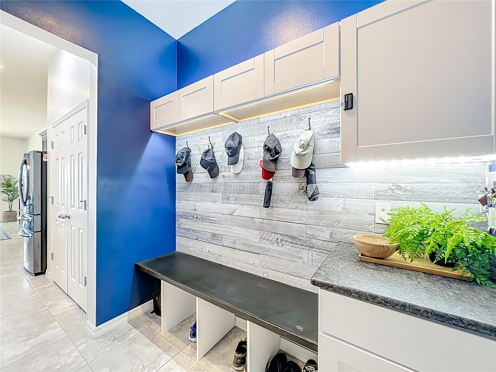 NEW PRICE IMPROVEMENT! Welcome to 966 Maypole Drive — a stylish, move-in-ready home in Apopka’s sought-after Hilltop Reserve! Step inside this beautifully designed floor plan, offering 3 bedrooms, 2 full bathrooms and a versatile "tiny" home office and a spacious open layout that’s ideal for today’s lifestyle. With 10-foot ceilings, beautiful gray tile flooring, custom paint in the large foyer and abundant natural light, this home feels airy, elegant, and inviting. At the heart of the home, the gourmet kitchen shines with granite countertops, Aristokraft shaker-style dark-stained wood cabinetry, and a giant 12.5-foot kitchen island that’s perfect for entertaining. Enjoy premium GE stainless steel appliances including a gas range, vented microwave, and dishwasher, plus a Samsung black stainless French-door refrigerator and stainless sink with Delta pulldown sprayer touch faucet. A bonus coffee station with matching granite and cabinetry with rollout shelving adds extra charm and convenience. The generous great room and dining area flow effortlessly from the kitchen, creating the perfect gathering space for family and friends. A sliding glass door opens to the covered lanai and private backyard, offering the ideal indoor-outdoor connection for relaxed Florida living. The primary suite is a peaceful retreat with carpeted flooring, a walk-in closet, and a spa-style en suite bath featuring dual vanities, a large glass shower enclosure, a private toilet closet, and a linen closet for extra storage. Bedroom 2 also offers carpeted comfort, while Bedroom 3 features bamboo laminate flooring, perfect for a guest suite, workout space, or creative studio. The 6' x 8' "tiny" home office/command center—enclosed by a modern barn door—provides flexibility as a home workspace, bar area, playroom, or extra storage zone. Throughout the home, you’ll find abundant cabinetry and smart storage solutions that make everyday organization effortless. Additional highlights include a mudroom with custom bench and built-ins, a laundry room with Samsung MultiSteam SmartCare washer and gas dryer, utility sink, and ample cabinetry, plus an oversized two-car garage with workbench and shelving for hobbies or projects. Nestled in Hilltop Reserve, a well-maintained, family-friendly community, residents enjoy resort-style amenities including a sparkling pool and splash zone, outdoor dining area, playground, and soccer/recreation field. Conveniently located near SR 414 and SR 429, you’re just minutes from Apopka’s refreshing natural springs, shopping, dining, and entertainment—and a short drive to historic Winter Garden, Mount Dora, Winter Park, downtown Orlando, the chain of lakes, and Florida’s beautiful beaches. This home is move-in ready and showcases custom finishes, designer touches, and thoughtful upgrades throughout—truly a model-home quality property in one of Apopka’s most desirable communities. Don’t miss this exceptional opportunity to make 966 Maypole Drive your next home!